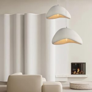 Les suspensions boule blanche restent très demandées. Leurs courbes adoucissent les angles et s'intègrent aussi bien dans un intérieur épuré que dans un décor vintage. Les formes nuage ou fleur séduisent pour les chambres d'enfants ou pour qui veut apporter de la douceur à une pièce. La céramique artisanale séduit les intérieurs qui s'inspirent des dernières tendances déco wabi-sabi ou méditerranéennes.