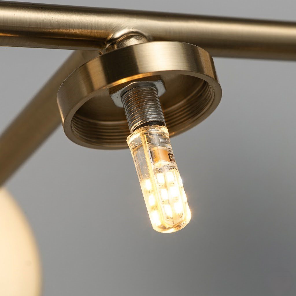 Trois globes en verre dépoli suspendus sur une tige dorée brossée — cette applique murale impose une élégance rare, quelque part entre le moderne et le mid-century. Allumée, elle baigne votre mur d’une lumière chaude et enveloppante, créant une atmosphère feutrée idéale pour un salon, une chambre ou une entrée remarquée. Sa finition dorée s’associe naturellement aux tons beige, terracotta ou vert sauge si tendance en ce moment. Compatible ampoules LED G9, elle vous laisse libre de choisir l’intensité et la chaleur lumineuse selon vos envies.