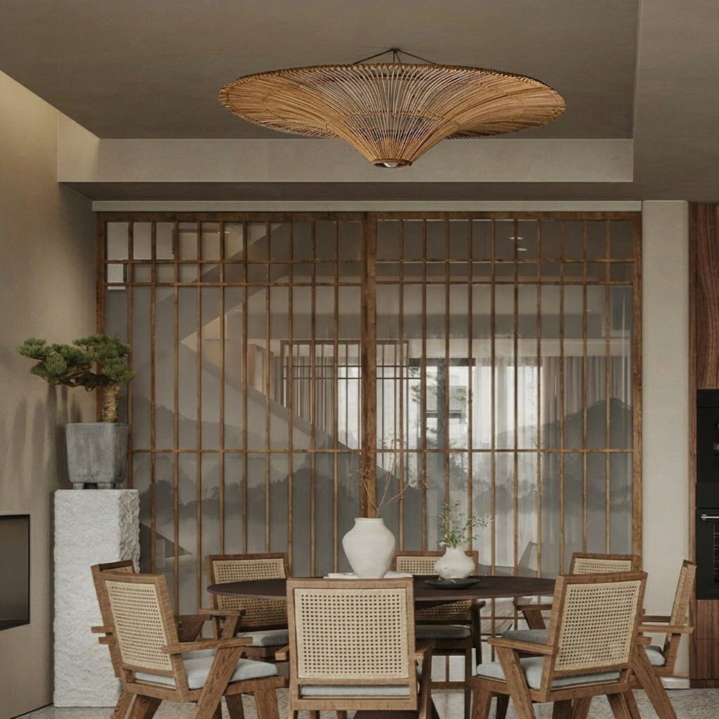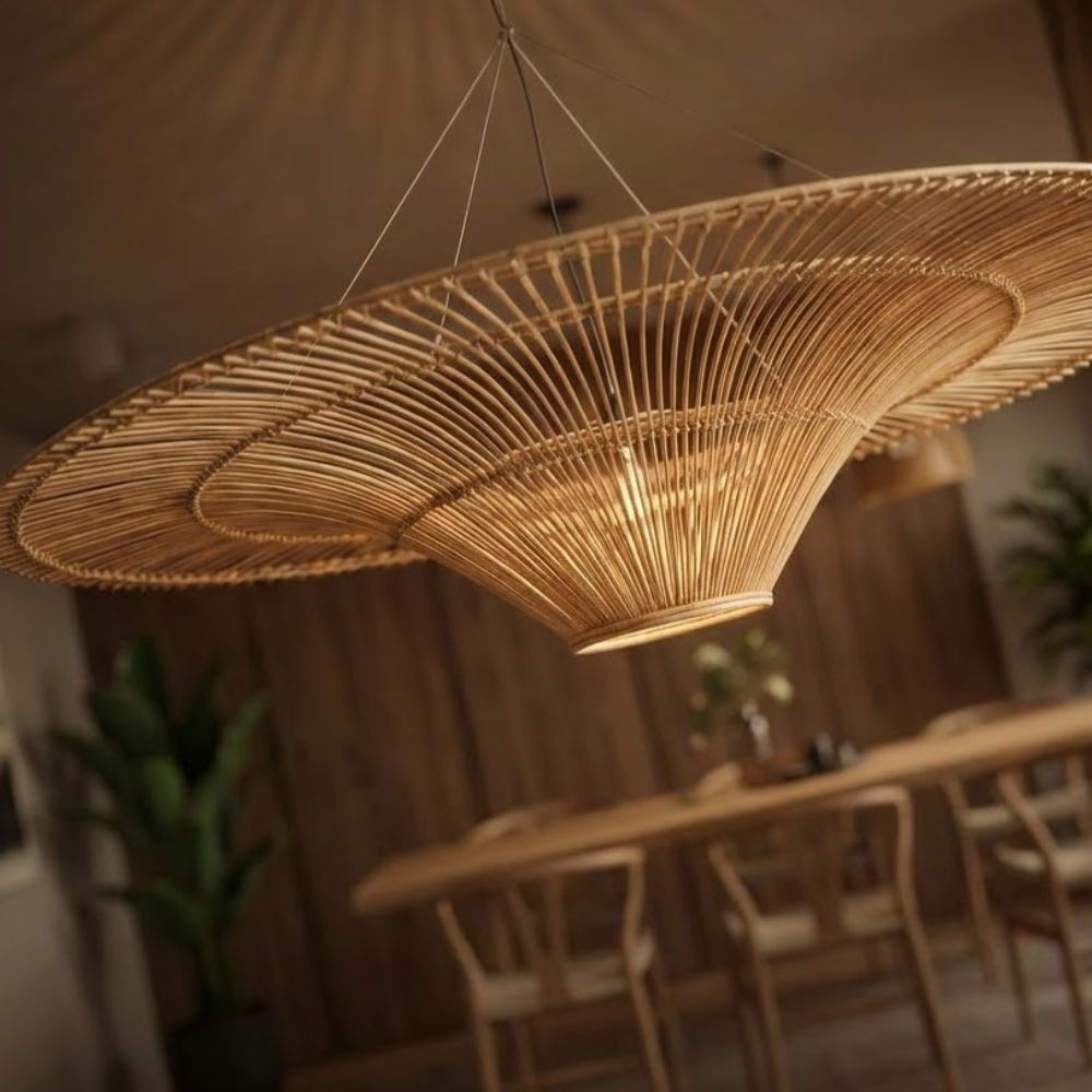 Grand plafonnier osier, la sculpture végétale qui embrasse votre plafond