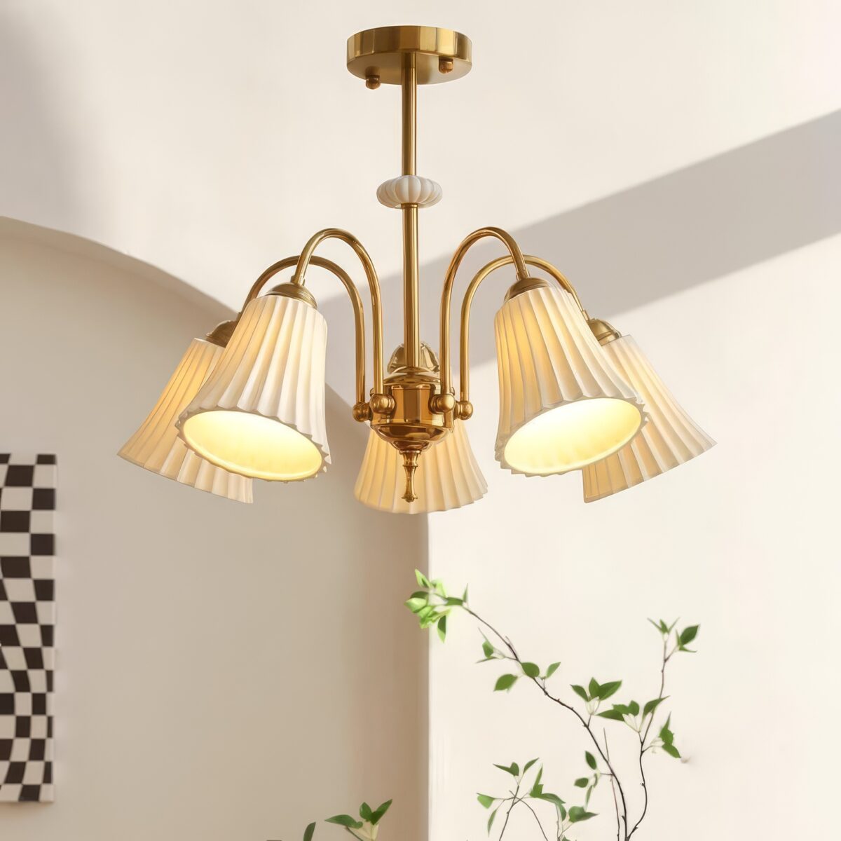 Ce lustre en céramique luxe doré incarne l’élégance intemporelle de l’Art Déco. Ses abat-jours en céramique blanche cannelée, magnifiés par une structure dorée sophistiquée, créent un jeu de lumières raffiné qui transforme instantanément votre salle à manger ou salon en écrin de prestige. Un design unique : des courbes harmonieuses aux finitions dorées qui captent et reflètent la lumière avec subtilité. Disponible en plusieurs tailles et configurations, ce luminaire s’adapte parfaitement à vos espaces, diffusant une ambiance chaleureuse et luxueuse. Un choix décoratif audacieux qui ne manquera pas de susciter l’admiration de vos invités.