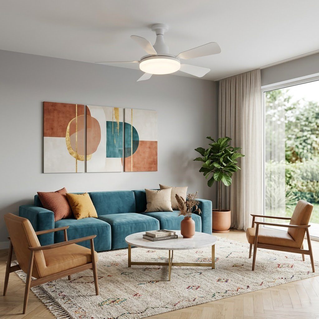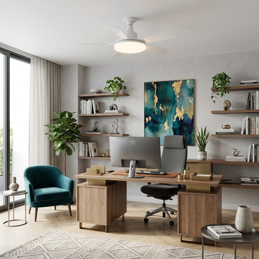 Discret et fonctionnel, ce petit plafonnier ventilateur blanc apporte une brise douce et une lumière LED agréable, sans encombrer visuellement votre plafond. Ses pales épurées s’inscrivent parfaitement dans un intérieur minimaliste ou scandinave, aussi bien dans une chambre que dans un salon ou un bureau. Son installation est d’une grande simplicité : il se visse directement sur une douille existante, sans travaux ni électricien. Compact avec ses 61 cm de diamètre, il convient aux petites pièces où l’air a besoin de circuler. Deux en un, pour un intérieur pensé jusqu’au plafond.