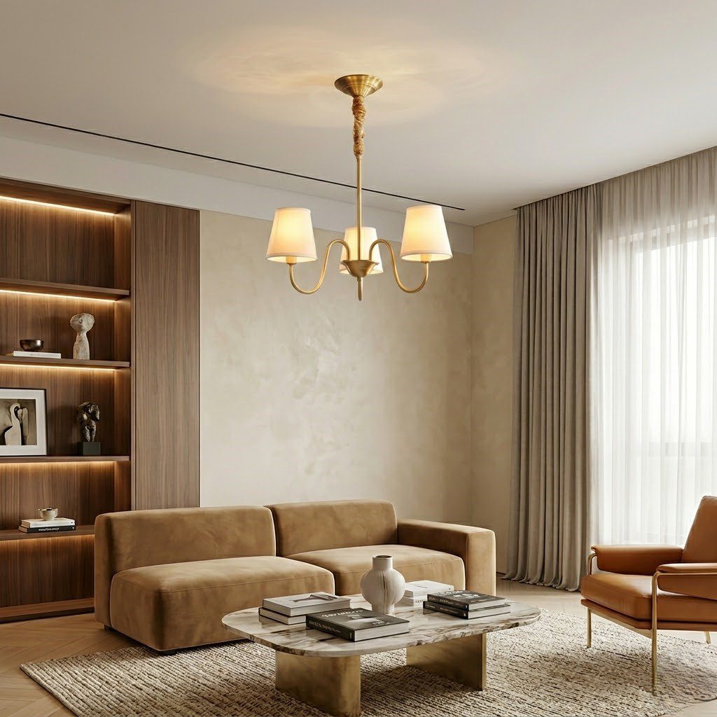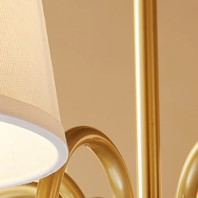 Ses bras en cuivre aux courbes généreuses et ses abat-jours en tissu crème respirent la douceur d’un intérieur américain authentique. Placé au-dessus d’une table à manger ou trônant dans un salon, ce plafonnier diffuse une lumière enveloppante qui invite à ralentir. Le mariage du métal cuivré et du tissu naturel apporte chaleur et caractère, sans jamais alourdir l’espace. Compatible avec des ampoules LED, il sublime votre intérieur tout en restant économe en énergie. Son installation est simple et son câble tressé, véritable détail couture, fait de lui un luminaire aussi beau vu de près que de loin.