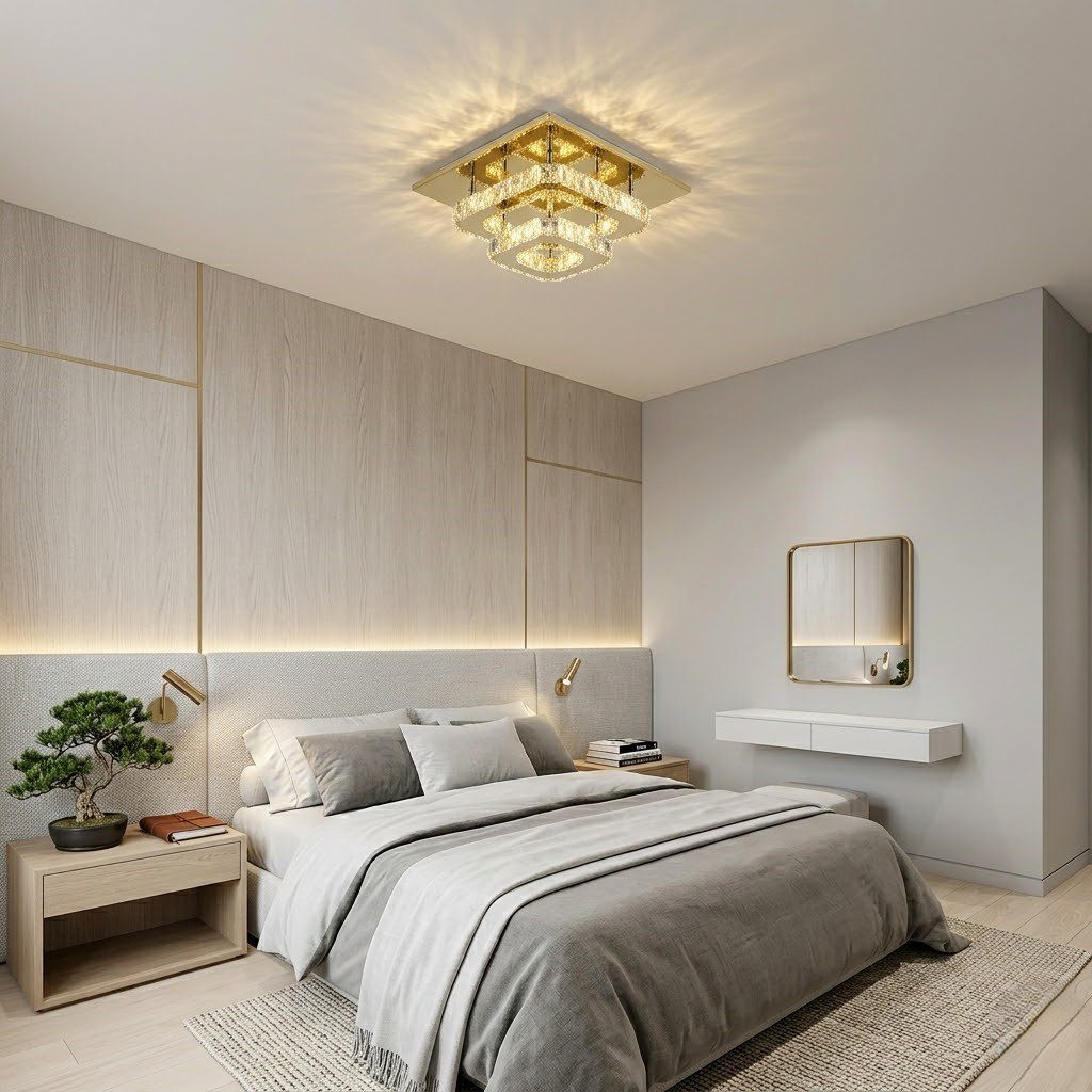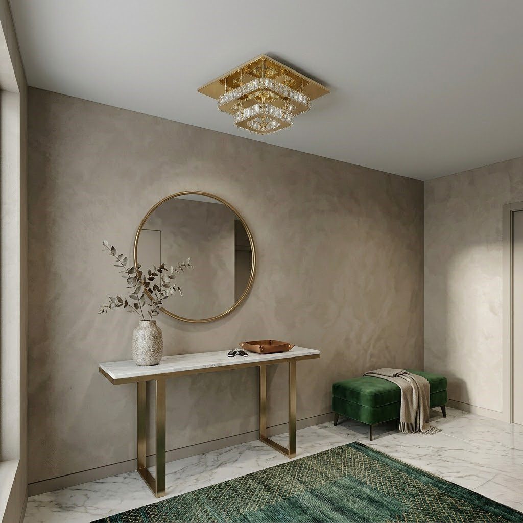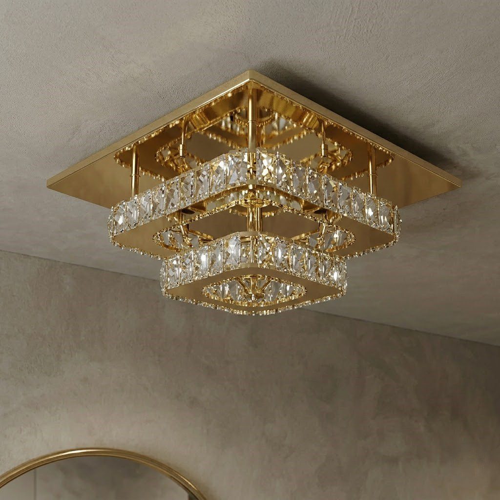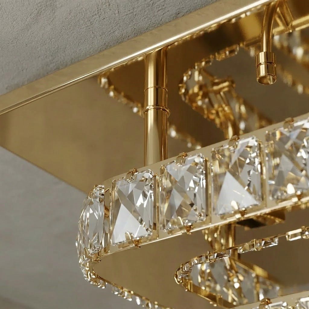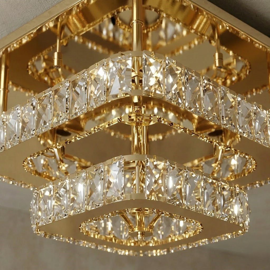 Plafonnier art déco carré, l’éclat du cristal et de l’or pour sublimer votre entrée