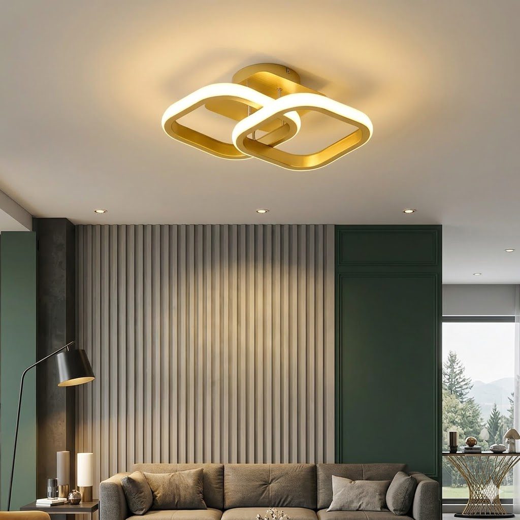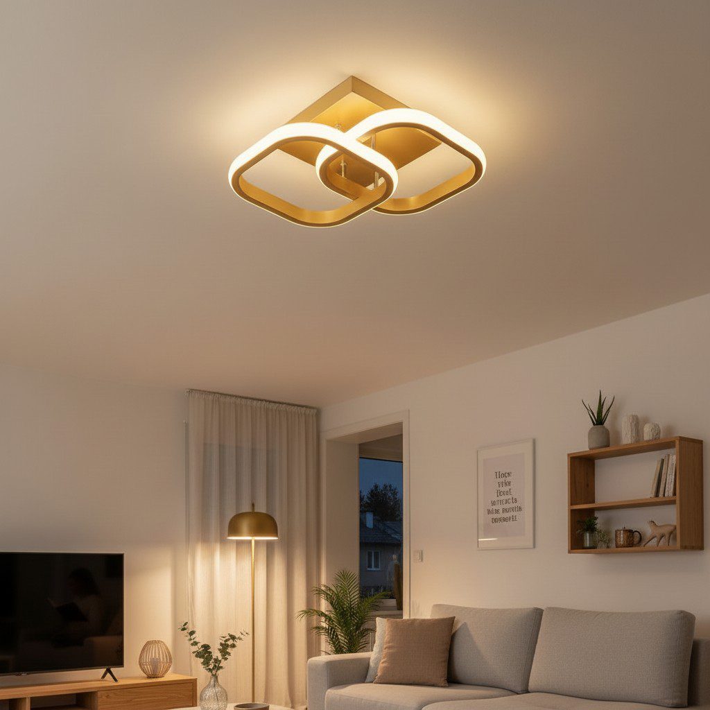 Dès le seuil franchi, ce plafonnier impose une première impression inoubliable. Ses deux cadres dorés aux angles arrondis s’enlacent avec une élégance géométrique qui sublime autant un couloir qu’une entrée. La lumière qu’il dégage est douce et enveloppante, modulable en trois températures pour s’adapter à chaque heure de la journée. En aluminium brossé doré, sa finition chaleureuse s’accorde avec les intérieurs scandinaves comme les ambiances plus contemporaines. LED intégrée, faible consommation, installation directe au plafond.