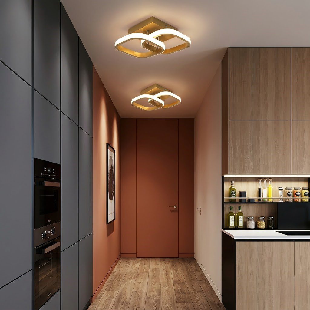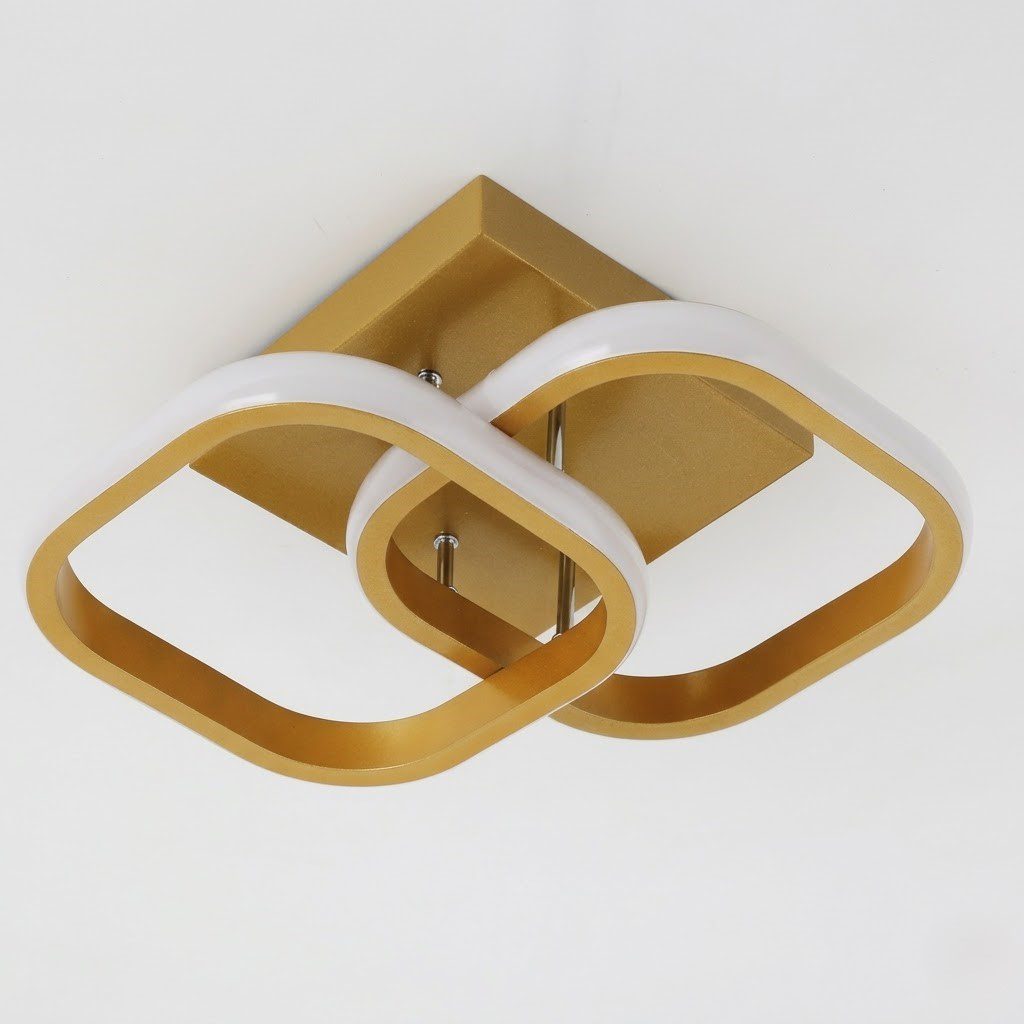 Plafonnier carré doré, deux carrés entrelacés pour une entrée qui marque les esprits