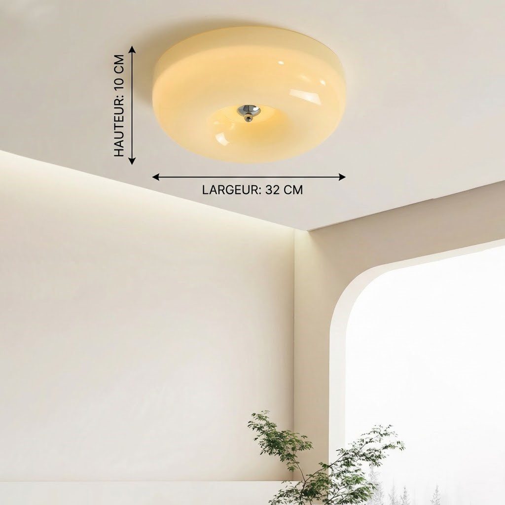 Succombez pour l’élégance rétro de ce plafonnier. SA forme ronde et généreuse, sa teinte crème laiteuse et son verre légèrement lustré lui donnent ce caractère vintage et intemporel qui s’intègre naturellement dans une chambre, un salon ou une entrée. Il apporte cette sérénité visuelle propre aux intérieurs scandinaves et minimalistes, sans jamais surcharger l’espace. De plus, sa source de lumière LED tricolores vous permet de passer d’une lumière chaude et cosy à une lumière plus vive selon vos besoins. Prêt à poser, livré avec ses ampoules, il s’installe sans contrainte.