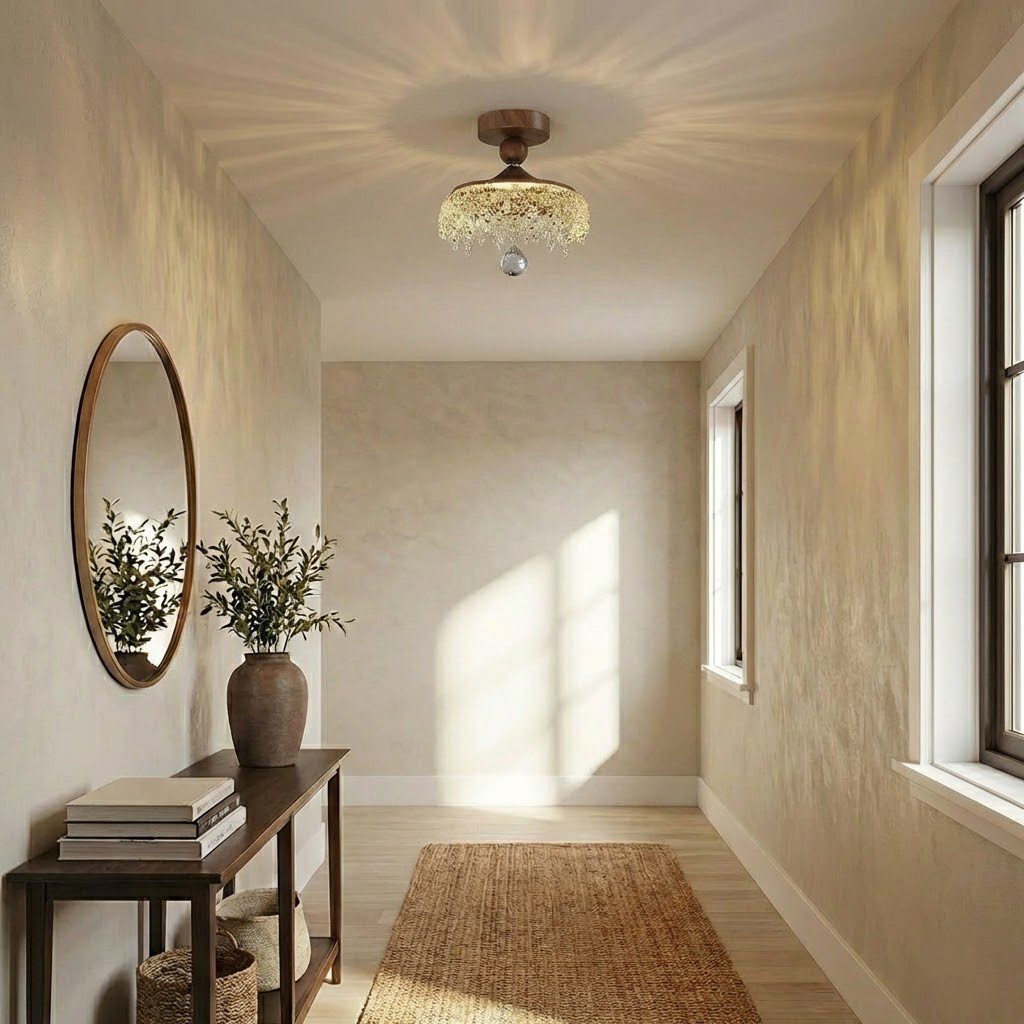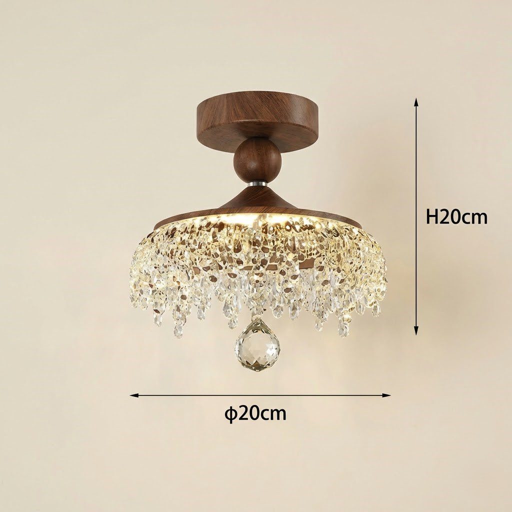 Ce plafonnier cristal vintage marie avec élégance la noblesse du bois de noyer à l’éclat scintillant du cristal acrylique. Sa structure compacte de 20 cm dévoile une cascade de perles cristallines qui retombent délicatement, créant un spectacle lumineux fascinant dans votre salon, chambre ou salle à manger. Le bois apporte une touche authentique et chaleureuse, tandis que les cristaux captent la lumière pour diffuser une ambiance feutrée et raffinée. Avec ses LED intégrées et sa variation tricolore, vous adaptez l’atmosphère selon vos envies, du blanc chaud apaisant au blanc froid dynamisant. Ultra-économique avec seulement 16W, ce luminaire allie caractère vintage et modernité pratique pour une installation simple et immédiate.
