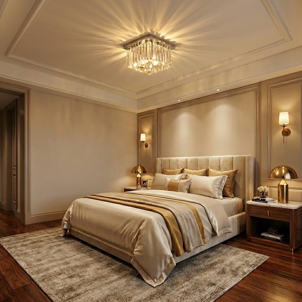Plafonnier carré en verre et cristal pour chambre, l’élégance lumineuse à portée de main
