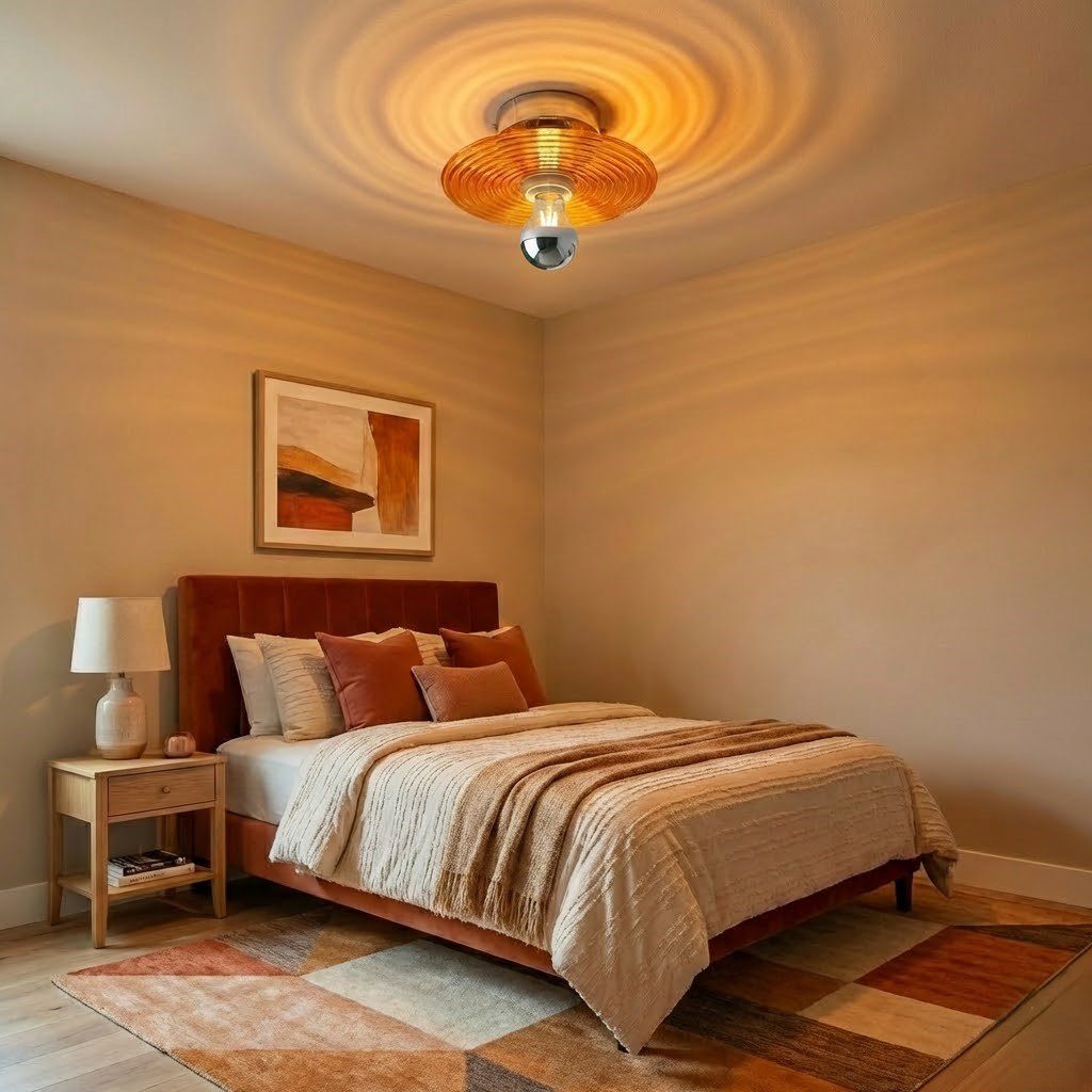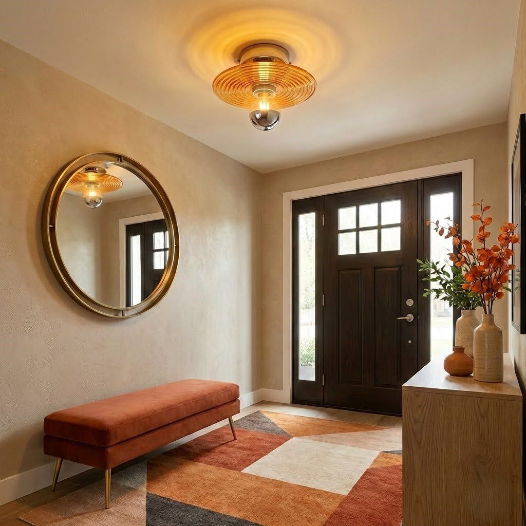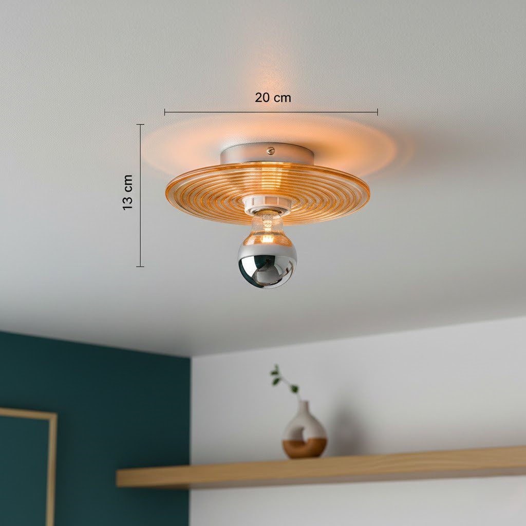 Ce plafonnier en verre soufflé orange est une célébration du savoir-faire artisanal et de l’audace chromatique. Son abat-jour travaillé à la main révèle des stries concentriques hypnotiques qui captent et diffusent la lumière de manière spectaculaire. La teinte orangée chaleureuse apporte instantanément caractère et personnalité à votre intérieur, créant une ambiance conviviale et énergisante. Chaque pièce de verre soufflé est unique, offrant des nuances et des reflets légèrement différents qui font de ce luminaire un objet précieux et authentique. Parfait au-dessus d’un îlot de cuisine ou d’un bar, il combine fonctionnalité et esthétique avec brio. Son format compact de 20 cm s’intègre avec élégance dans les espaces modernes ou scandinaves. Livré avec son ampoule LED compatible, il garantit un éclairage chaleureux immédiat tout en respectant votre consommation énergétique.