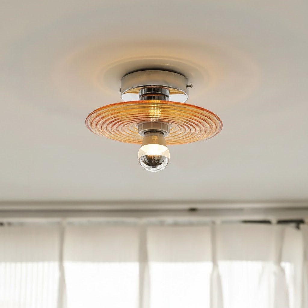 Plafonnier en verre soufflé orange, fusion parfaite entre design sophistiqué et couleur originale