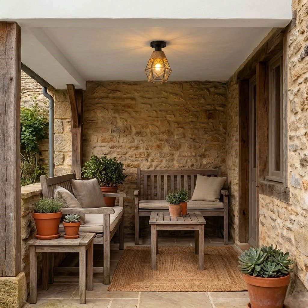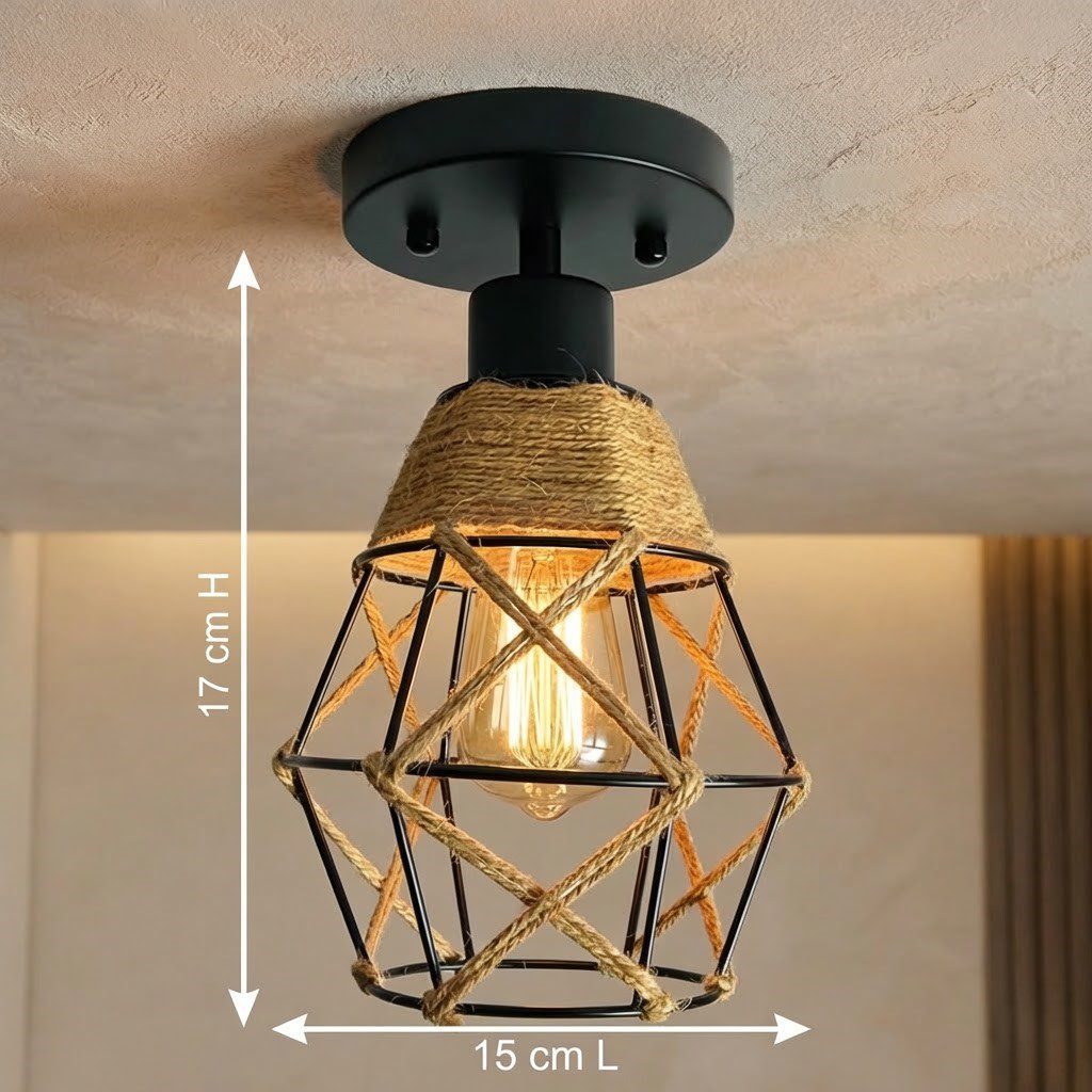 Imaginez vos soirées d’été sous une lumière dorée et tamisée, où chaque convive se sent enveloppé d’une chaleur authentique. Ce plafonnier mêle cage métallique géométrique et corde de rotin tressée pour créer une atmosphère rustique et intimiste, aussi bien sous un auvent qu’en véranda ou pergola. La lumière filtre à travers les barreaux et réchauffe instantanément l’espace, transformant un simple extérieur en véritable salon à ciel ouvert. Compatible LED pour une consommation maîtrisée, il s’installe en quelques minutes et fait son effet toute l’année.