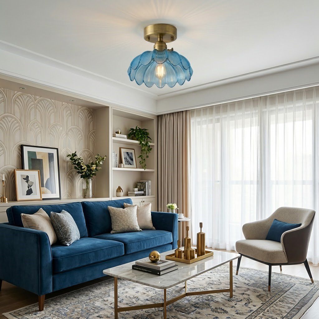 Plafonnier fleur bleu, une touche de couleur audacieuse qui capte tous les regards
