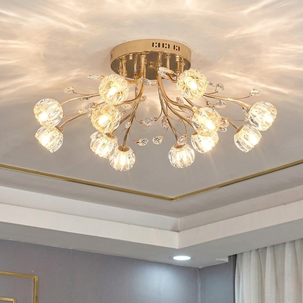 Plafonnier forme fleur luxe doré, un décor lumineux qui change votre intérieur