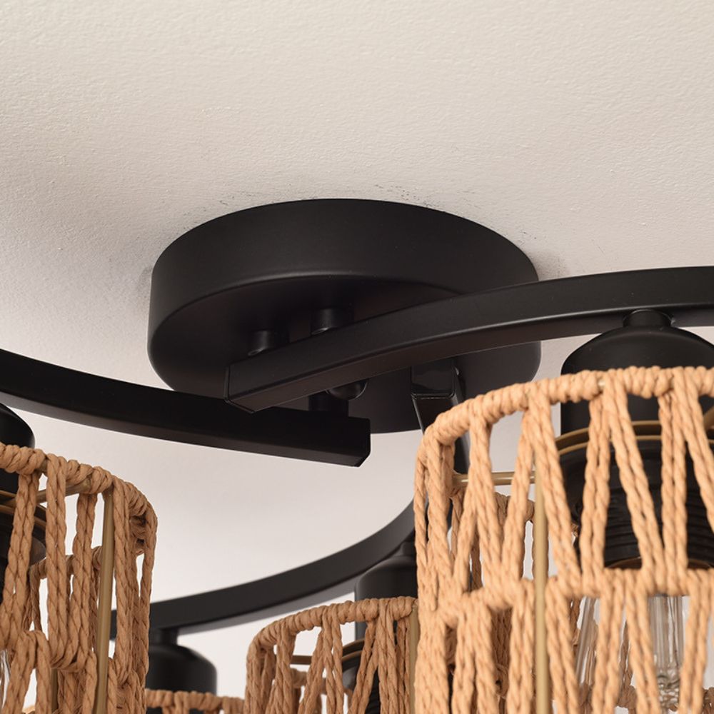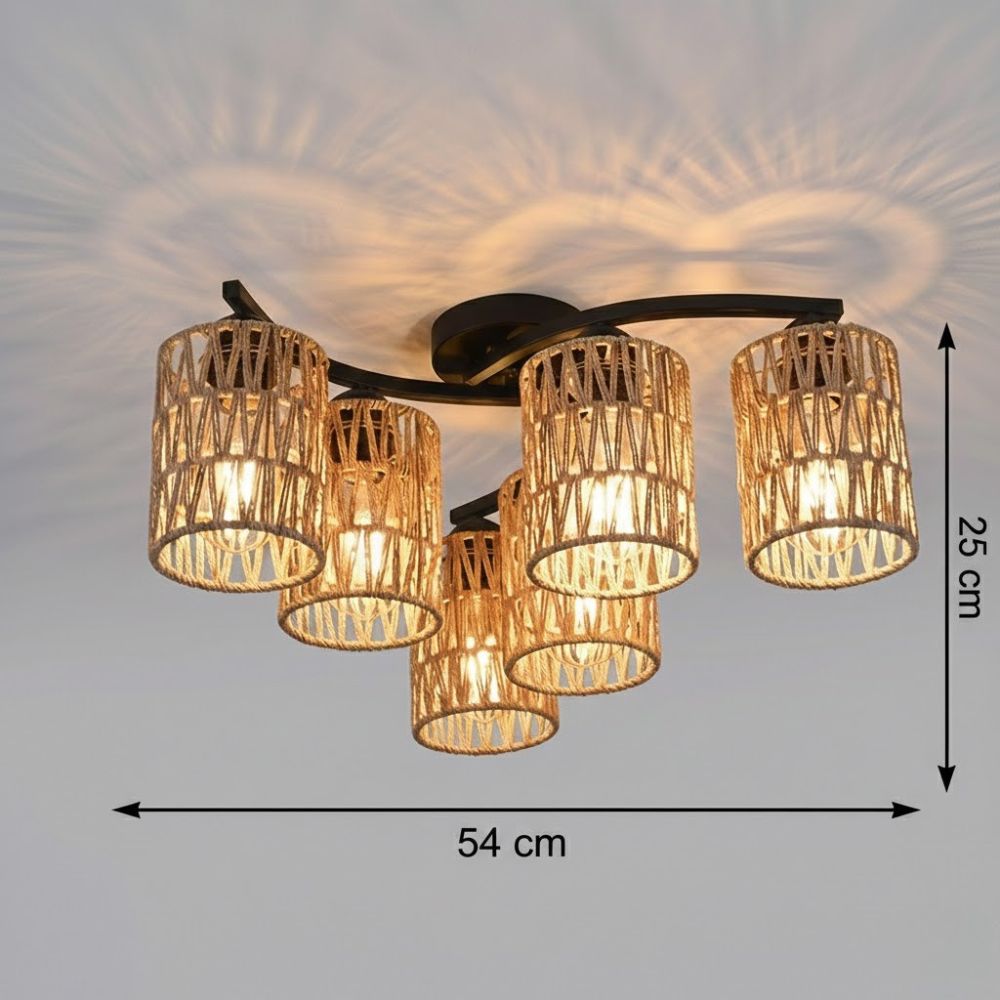Ce plafonnier osier multiples têtes met en valeur l’élégance rustique et la modernité industrielle dans une harmonie parfaite. Ses six abat-jours cylindriques en osier naturel tressé filtrent la lumière avec délicatesse, projetant sur vos murs et plafonds un ballet d’ombres dansantes fascinant. Chaque cage végétale révèle le savoir-faire du tressage, apportant texture et chaleur à votre espace. La structure en métal forgé noir contraste magnifiquement avec la douceur naturelle de l’osier, créant un équilibre visuel captivant. Au-dessus d’une table de salle à manger ou dans un salon contemporain, ce luminaire devient le point focal qui insuffle caractère et authenticité. Les branches déployées distribuent harmonieusement la lumière sur toute la surface d’accueil. Ses six douilles E27 vous offrent la liberté de personnaliser l’ambiance lumineuse selon vos envies, des ampoules à filament vintage aux LED modernes. Installation simplifiée et compatible avec toutes tensions pour transformer rapidement votre quotidien en expérience sensorielle naturelle.