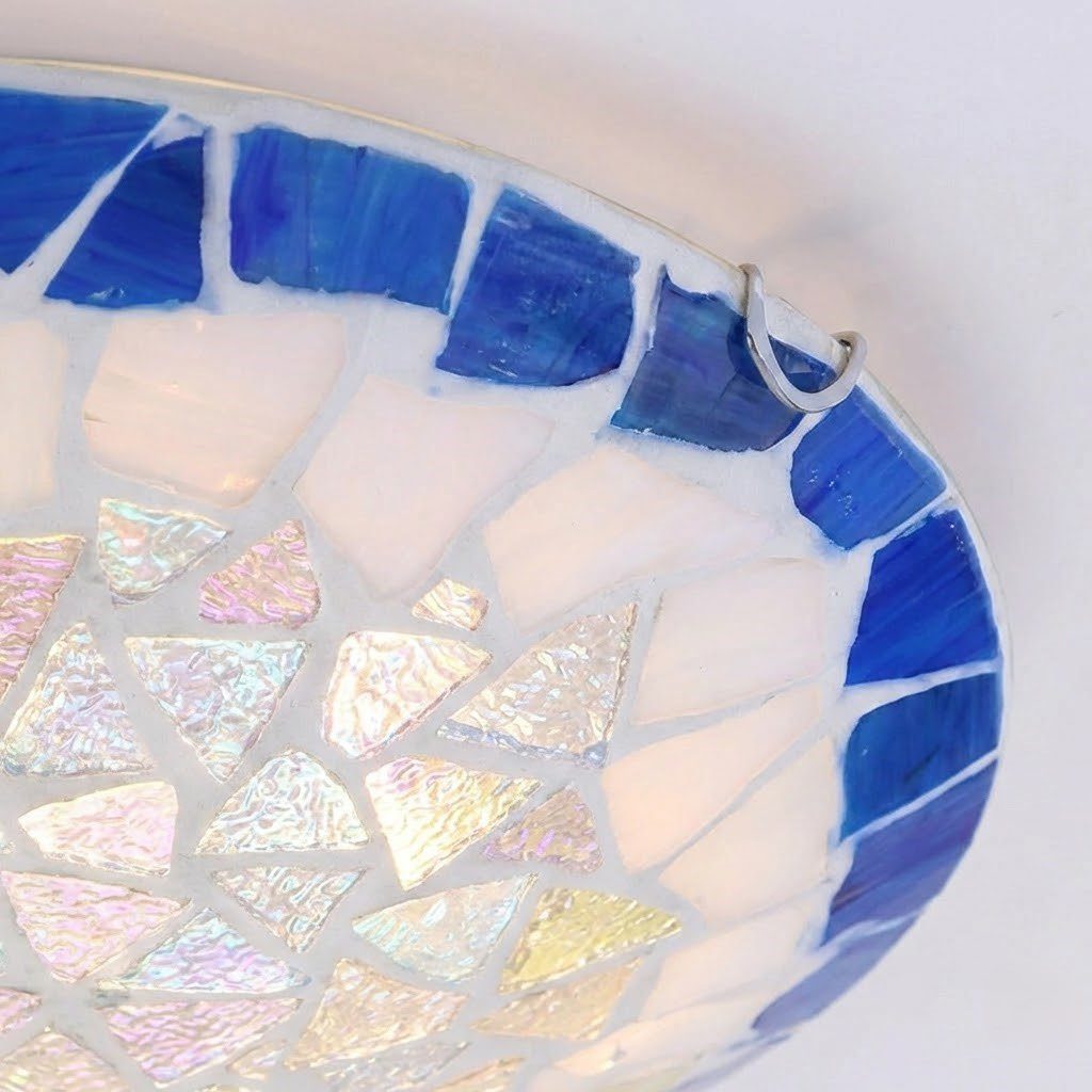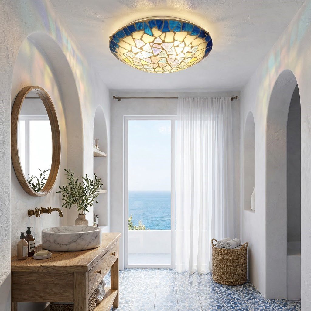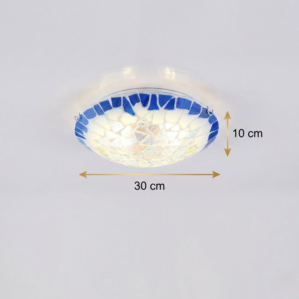 Fermez les yeux et imaginez les ruelles colorées de Santorini, les carreaux de faïence d’Andalousie, la lumière dorée qui filtre à travers un vitrail. C’est exactement l’âme que ce plafonnier mosaïque offre à votre intérieur. Ses éclats de verre irisés, bordés d’un bleu méditerranéen profond, diffusent une lumière douce aux reflets nacrés qui enveloppe la pièce d’une chaleur bohème et poétique. Discret et compact, il s’installe sans effort au plafond de votre salle de bain, salon, ou à l’entrée, apportant instantanément ce supplément d’âme qui transforme un simple plafond en véritable déclaration décorative.