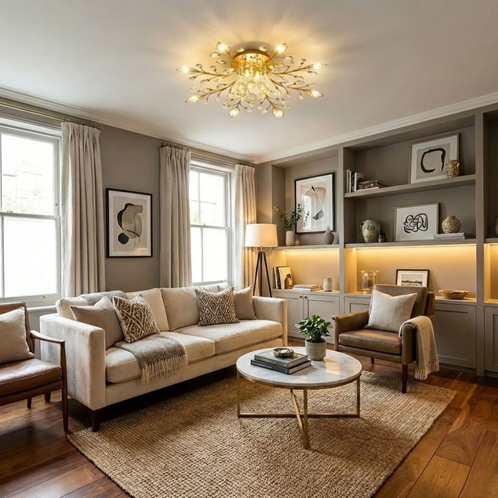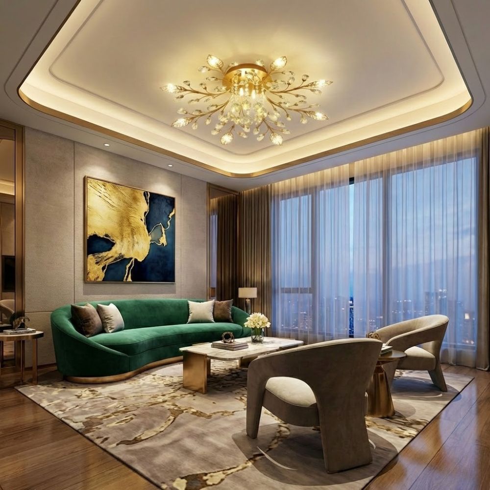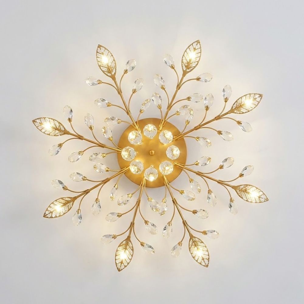 Plafonnier salon fleur, l’éclosion dorée qui sublime votre plafond