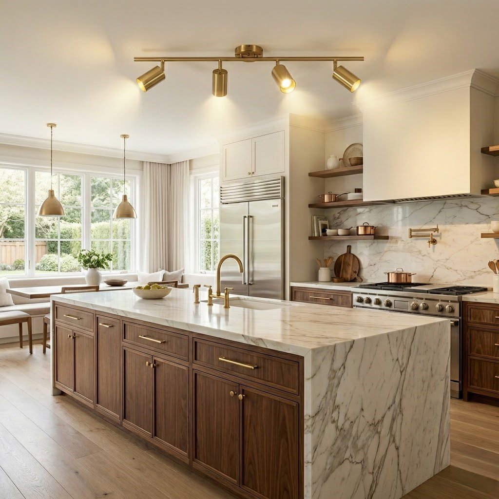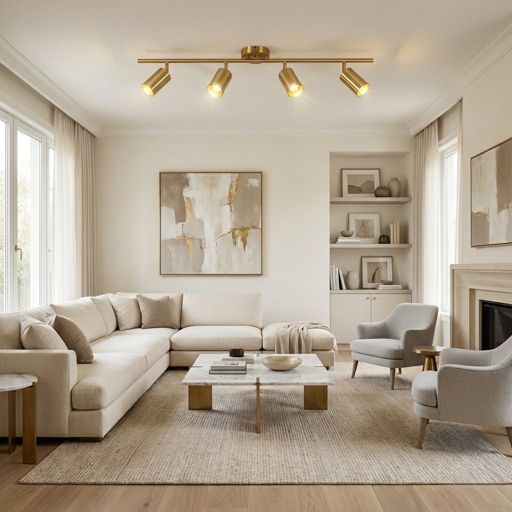 Plafonnier spot doré LED, l’éclairage modulable au charme cuivré