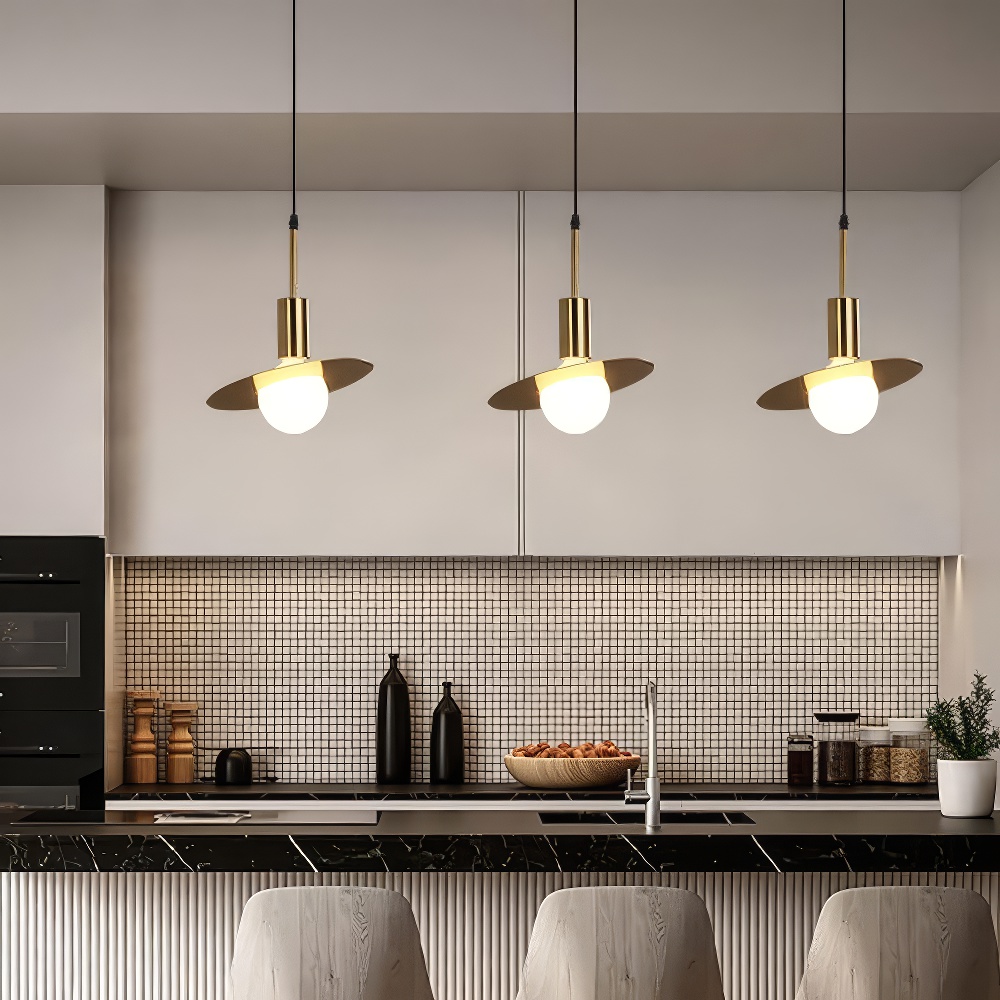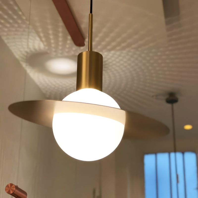 Suspension ampoule art déco minimaliste, l’essence du design doré dans un écrin métallique sculptural