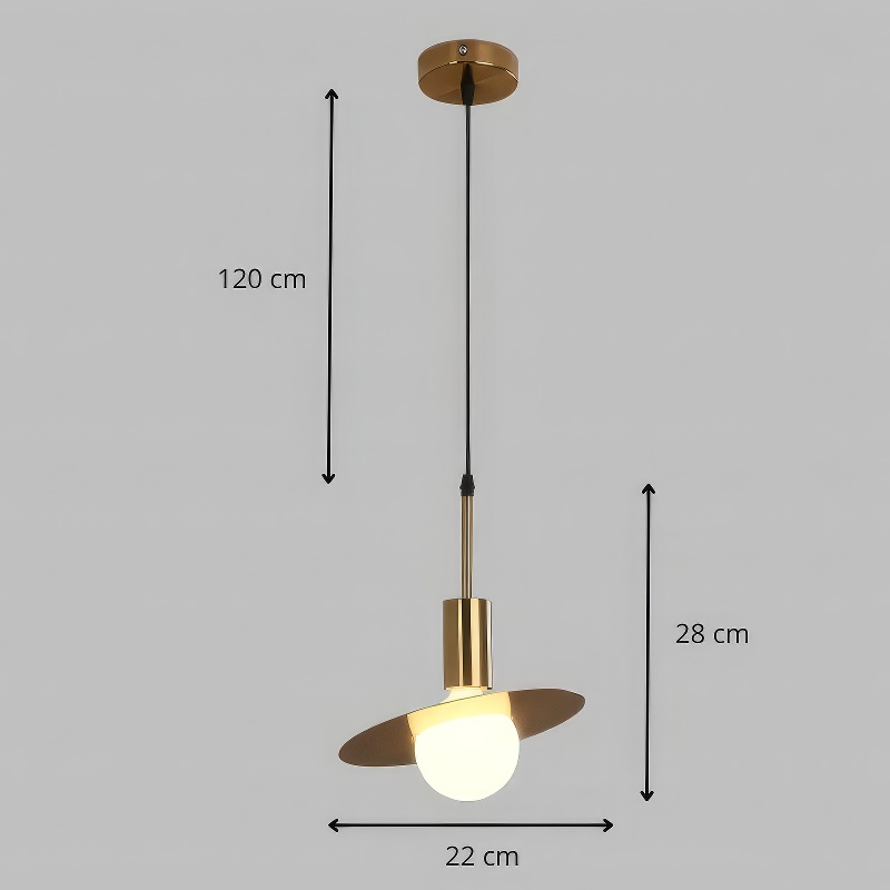 Cette suspension ampoule art déco minimaliste incarne l’élégance à l’état pur avec son design épuré qui fait de l’ampoule la véritable star. Son réflecteur doré en forme de disque horizontal sublime la source lumineuse tout en dirigeant la lumière avec précision, créant un éclairage à la fois fonctionnel et poétique. Le contraste saisissant entre le métal doré brillant et le câble textile noir apporte cette sophistication moderne si recherchée dans les intérieurs contemporains. Ses dimensions compactes de 22cm de largeur en font un luminaire discret mais remarquablement expressif, parfait pour créer un point focal lumineux au-dessus d’une table de chevet ou d’un coin repas intime. La hauteur réglable exceptionnelle de 120cm offre une liberté totale d’ajustement selon vos besoins et contraintes d’espace. Compatible avec tous types d’ampoules E27, y compris les modèles décoratifs à filament apparent ou LED, elle révèle pleinement la beauté de votre choix d’éclairage. Un luminaire minimaliste qui prouve que simplicité rime avec raffinement.