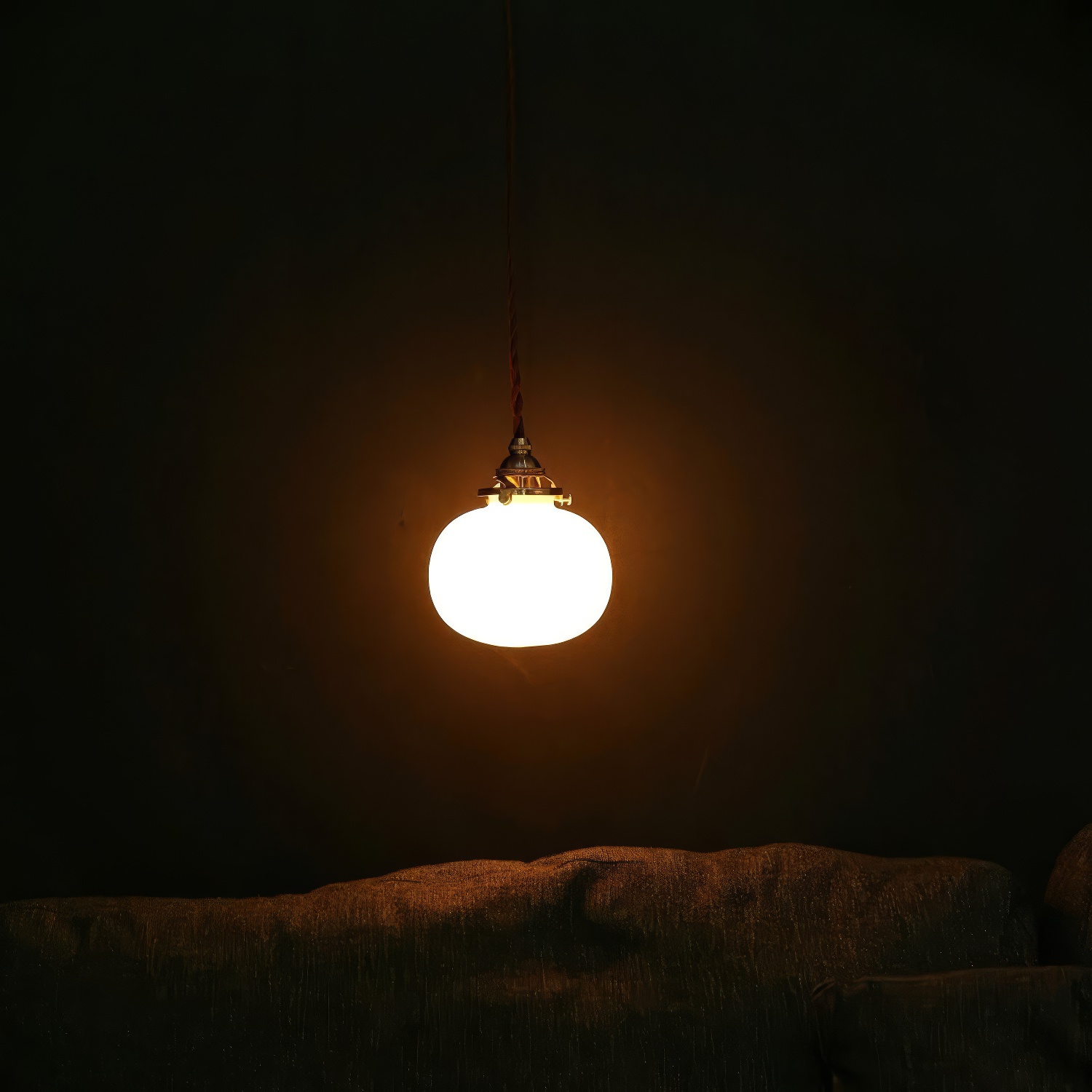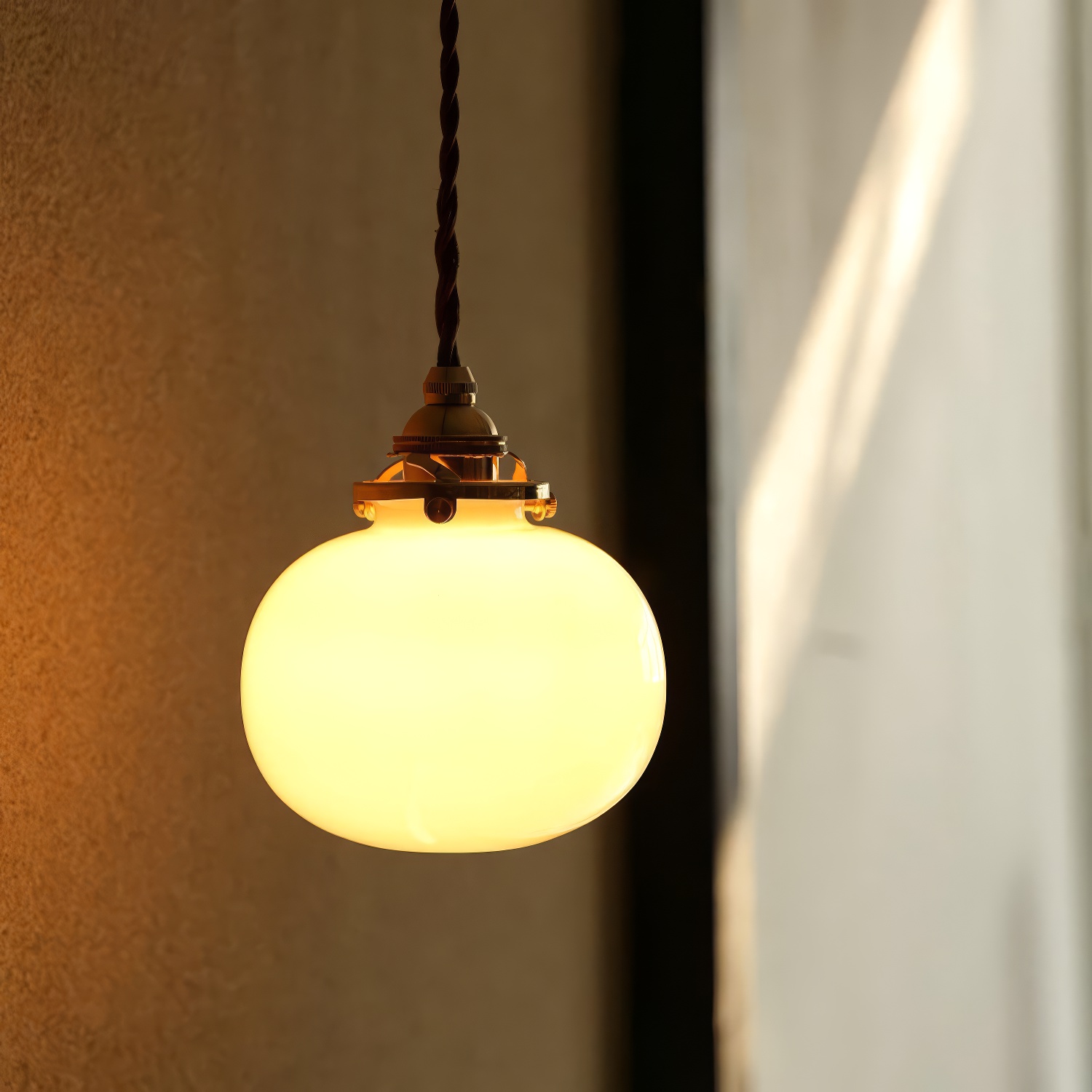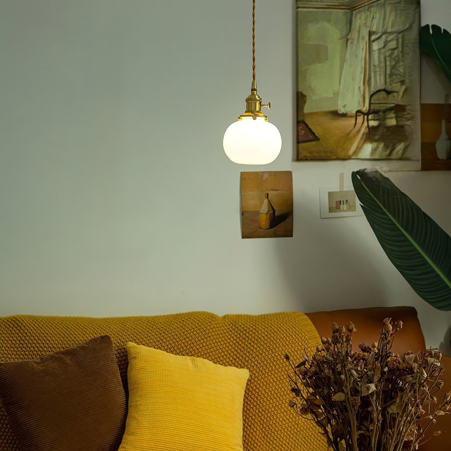 Suspension boule blanche et laiton, la pureté minimaliste sublimée