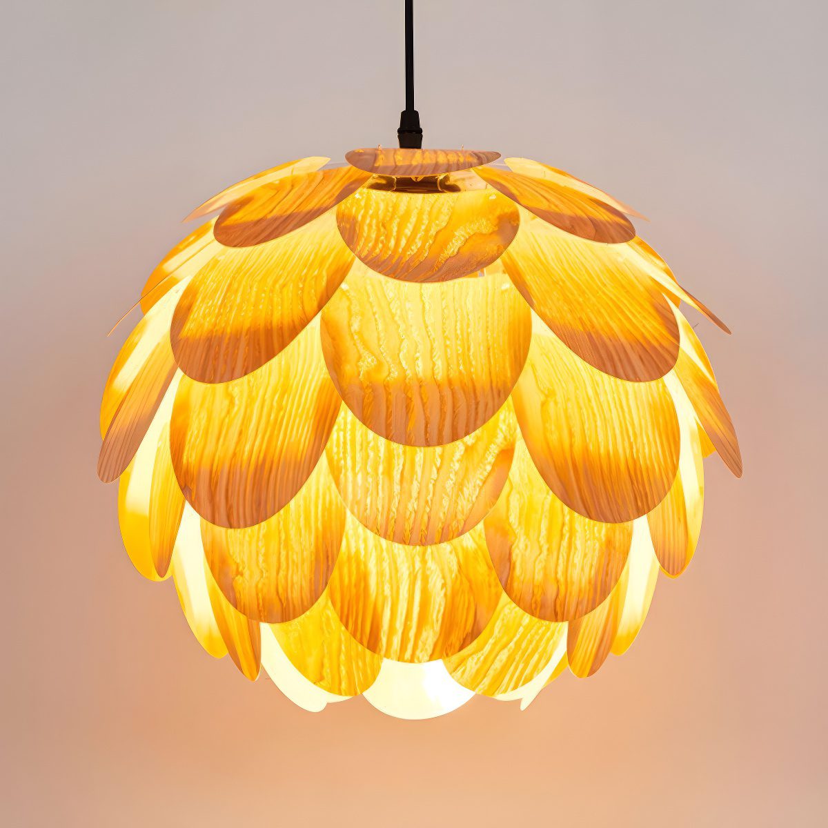 Suspension boule pétale bois, la poésie naturelle qui réchauffe votre foyer