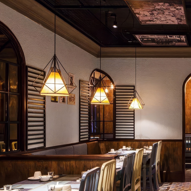 Suspension cage triangle métal noir, l’élégance géométrique qui structure votre décor