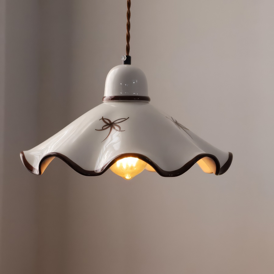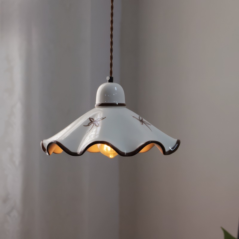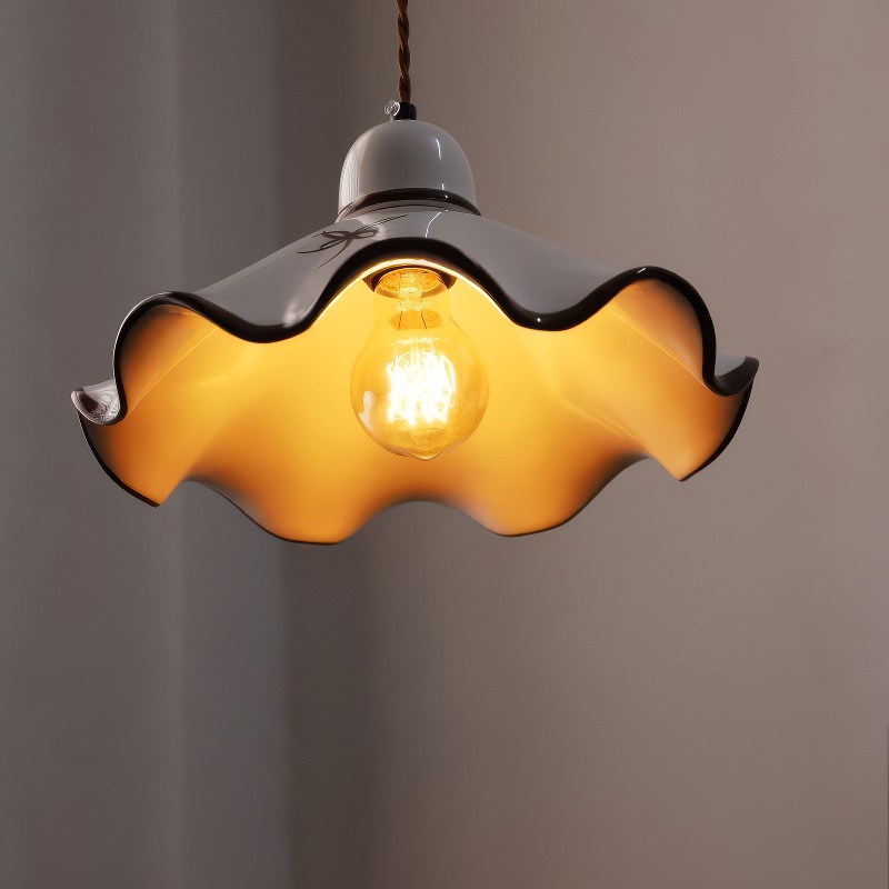 Suspension céramique vintage, une ombrelle de lumière aux bords festonnés qui ressuscite le charme des cuisines d’antan