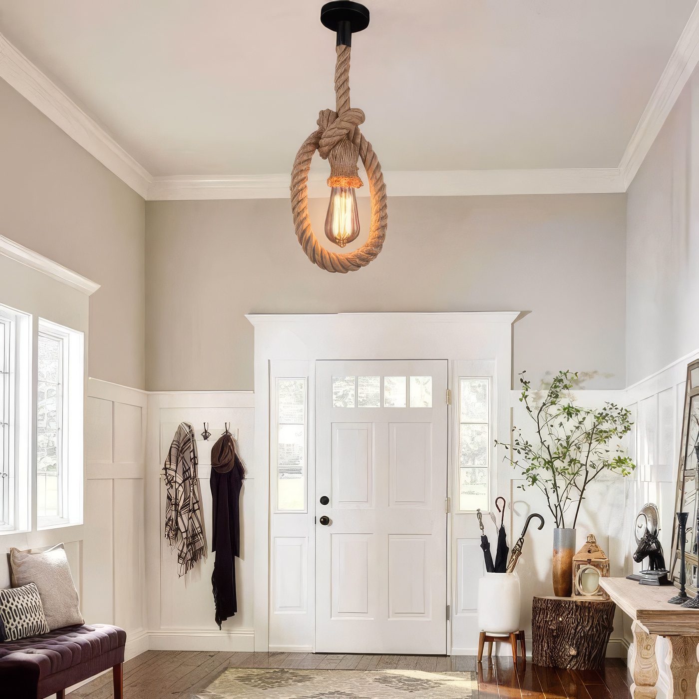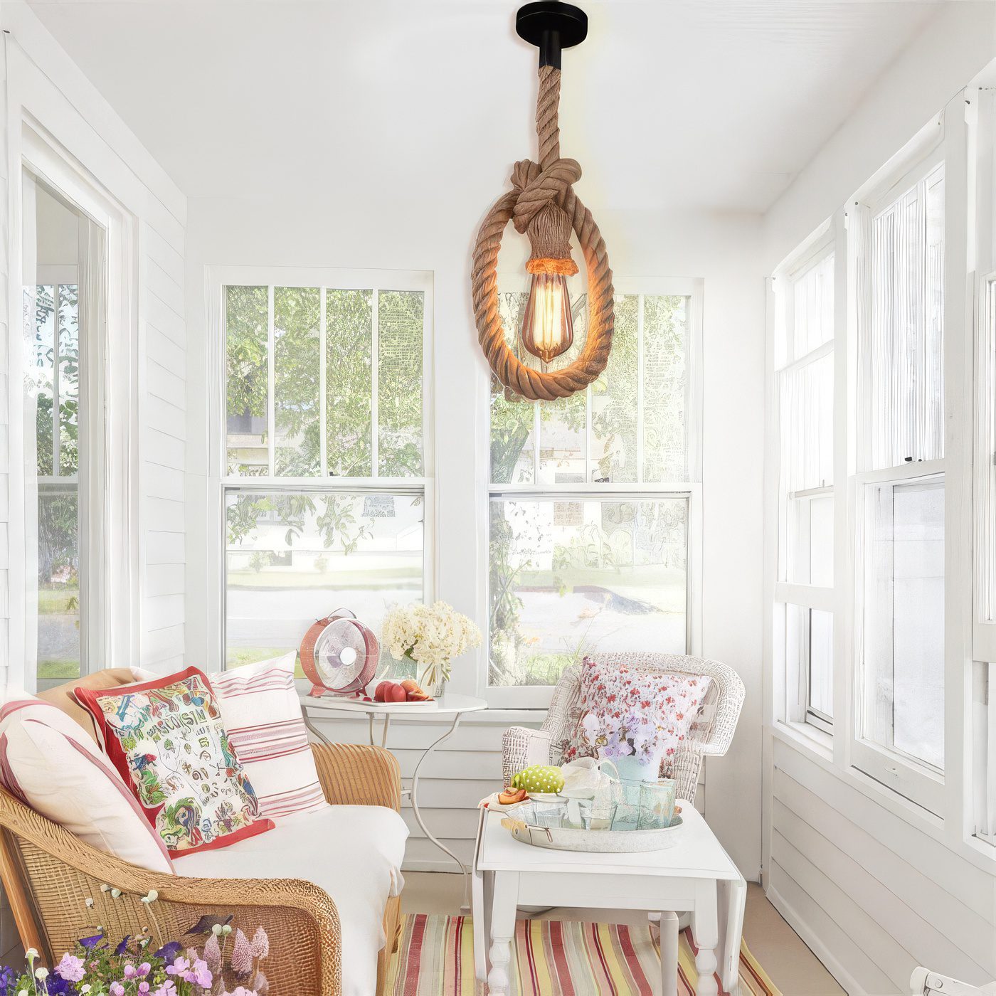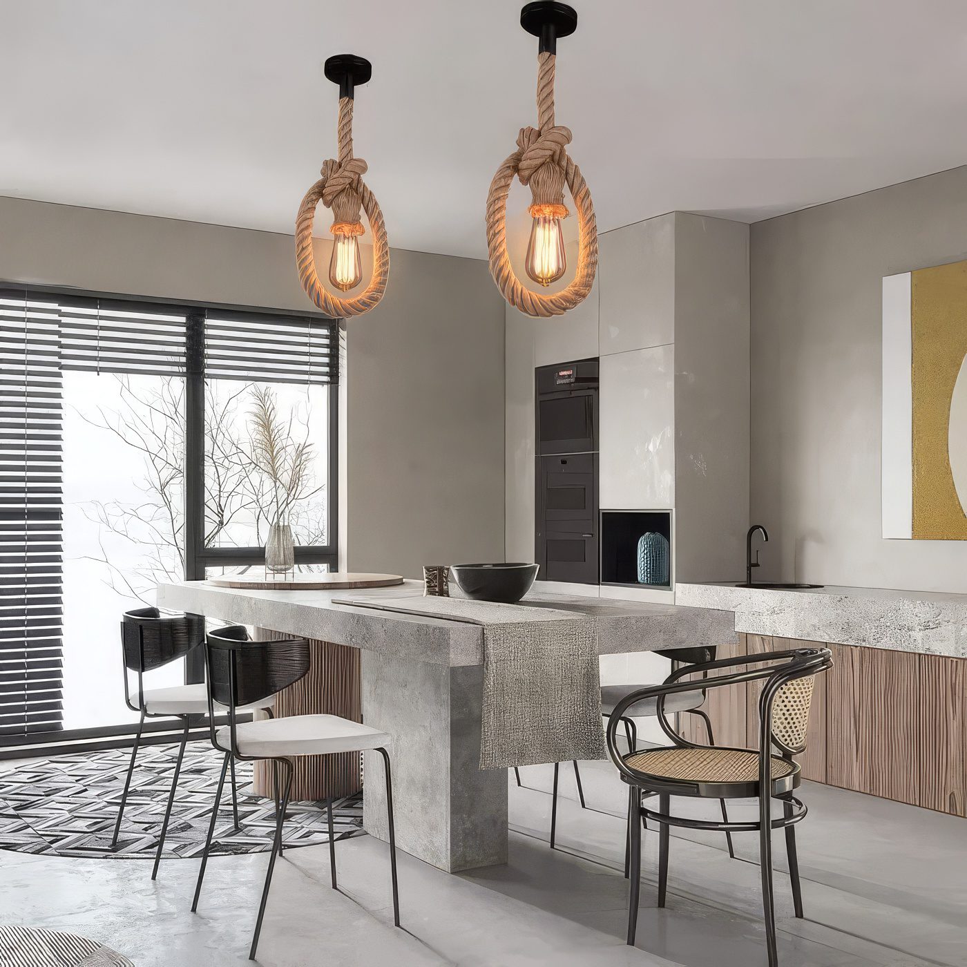 Cette suspension en corde de chanvre avec nœud marin incarne l’élégance brute et l’authenticité d’un design inspiré du monde nautique. Sans abat-jour, l’ampoule reste visible, renforçant l’aspect épuré et industriel de ce luminaire. Le nœud marin devient un véritable élément décoratif qui attire le regard et structure l’espace avec subtilité. Parfait pour une ambiance bord de mer, bohème ou loft, ce luminaire se démarque par son caractère et sa touche sophistiquée. Son style unique conjugue naturel et raffinement, tout en mettant en valeur des matériaux durables. Idéale dans une entrée, au-dessus d’un bar ou en enfilade dans un couloir, cette suspension crée une atmosphère chaleureuse et pleine de personnalité.