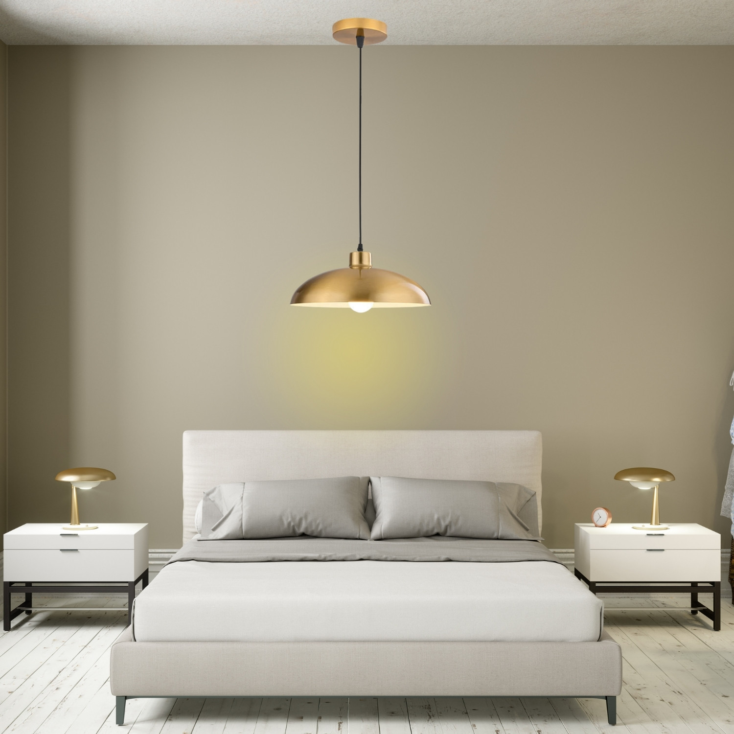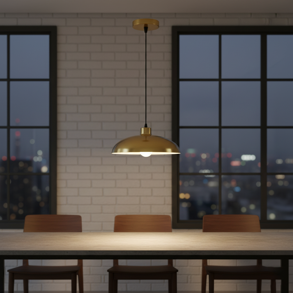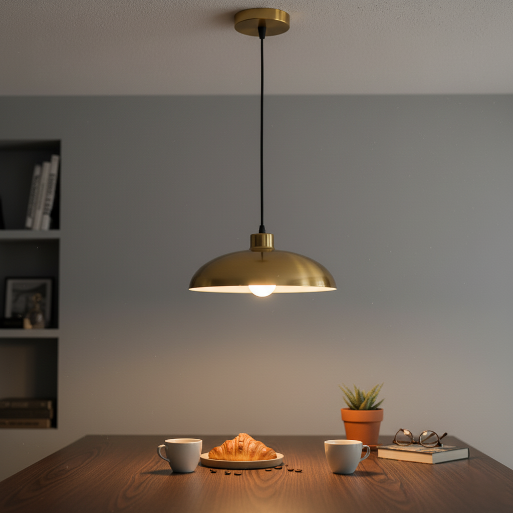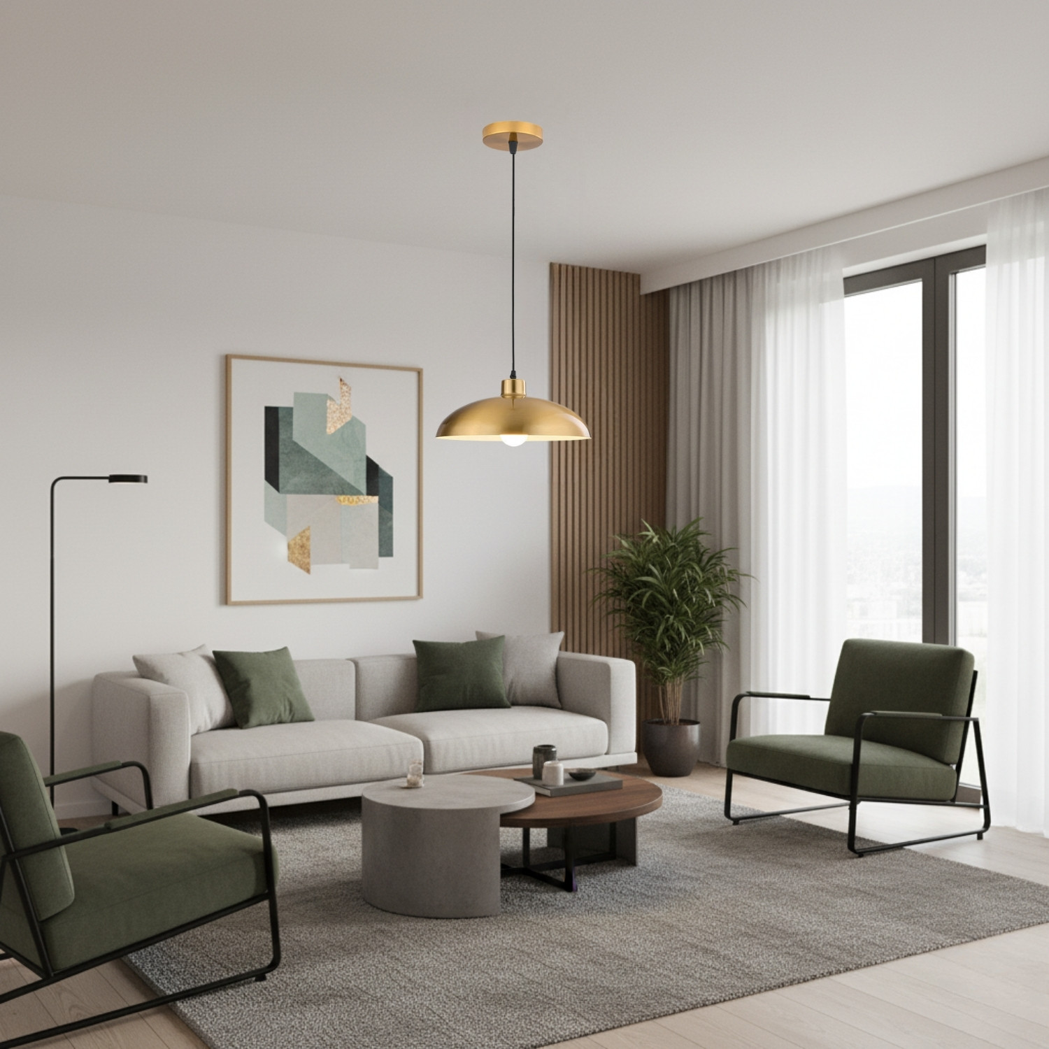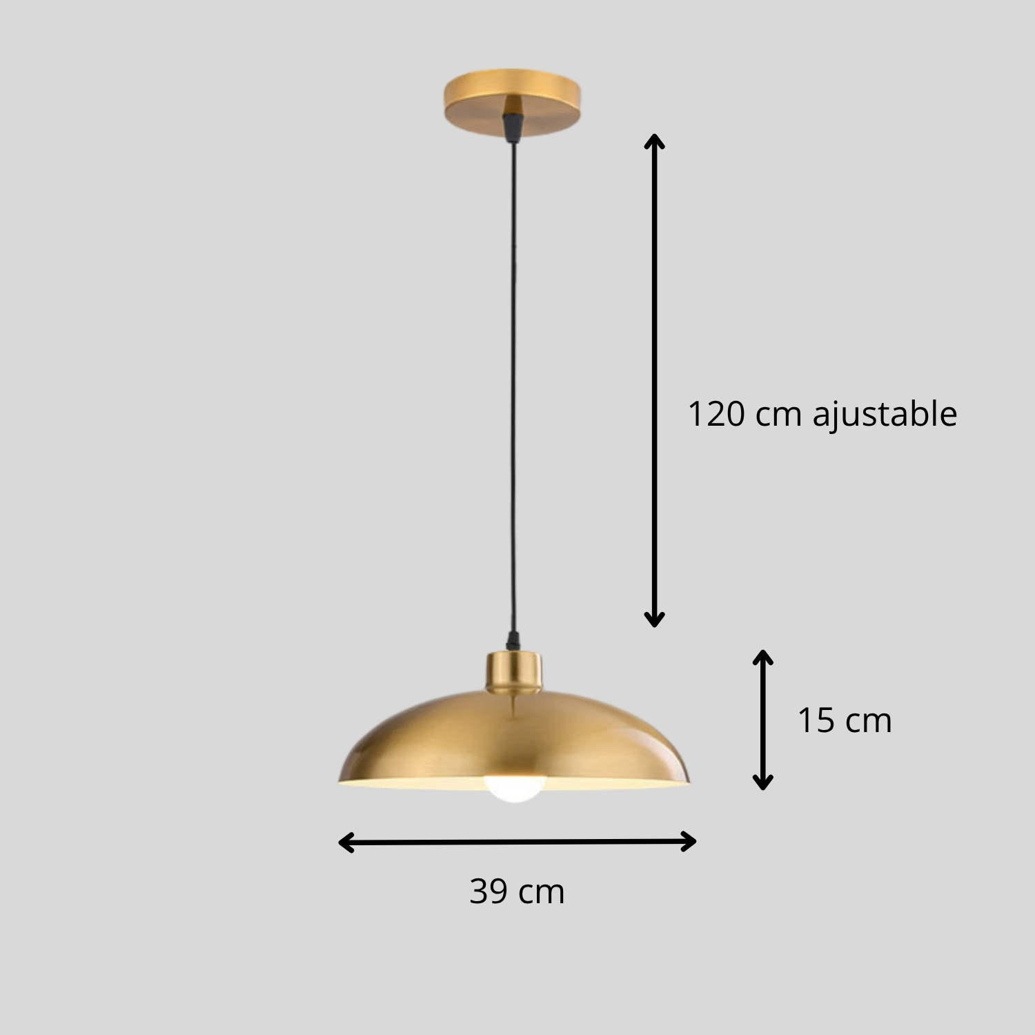 Cette suspension dorée coupelle apporte une touche lumineuse et moderne à votre intérieur. Son abat-jour en métal doré brossé diffuse une lumière chaleureuse tout en créant un effet sophistiqué. Dotée d’un câble réglable de 1,2 mètre, elle convient aussi bien aux espaces de vie qu’aux restaurants ou bureaux. Avec son diamètre de 39 cm et sa hauteur de 15 cm, elle illumine harmonieusement vos pièces. Installation simple, livraison soignée : vous l’installez sans stress, elle sublime votre déco au quotidien.