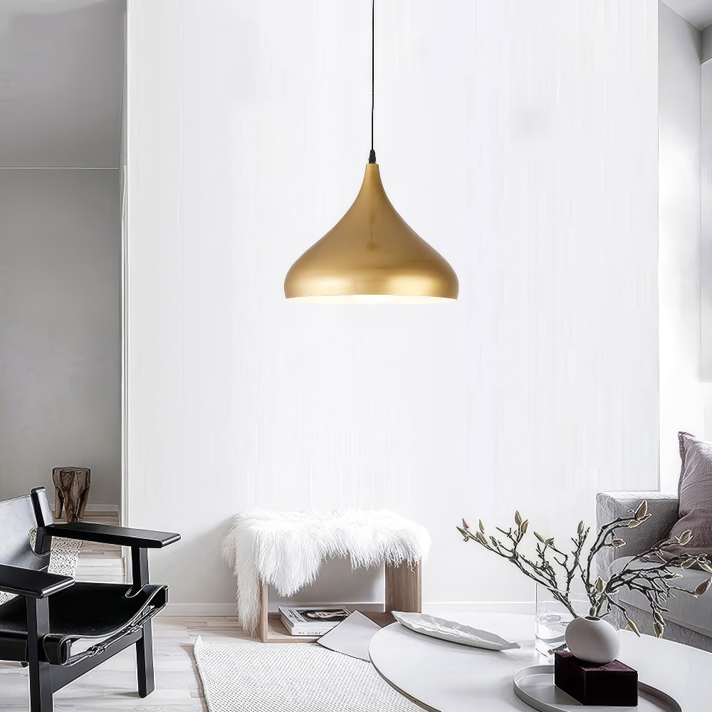 Suspension dorée minimaliste, le luminaire en métal doré pour une touche de luxe moderne en toute simplicité au sein de votre espace de vie