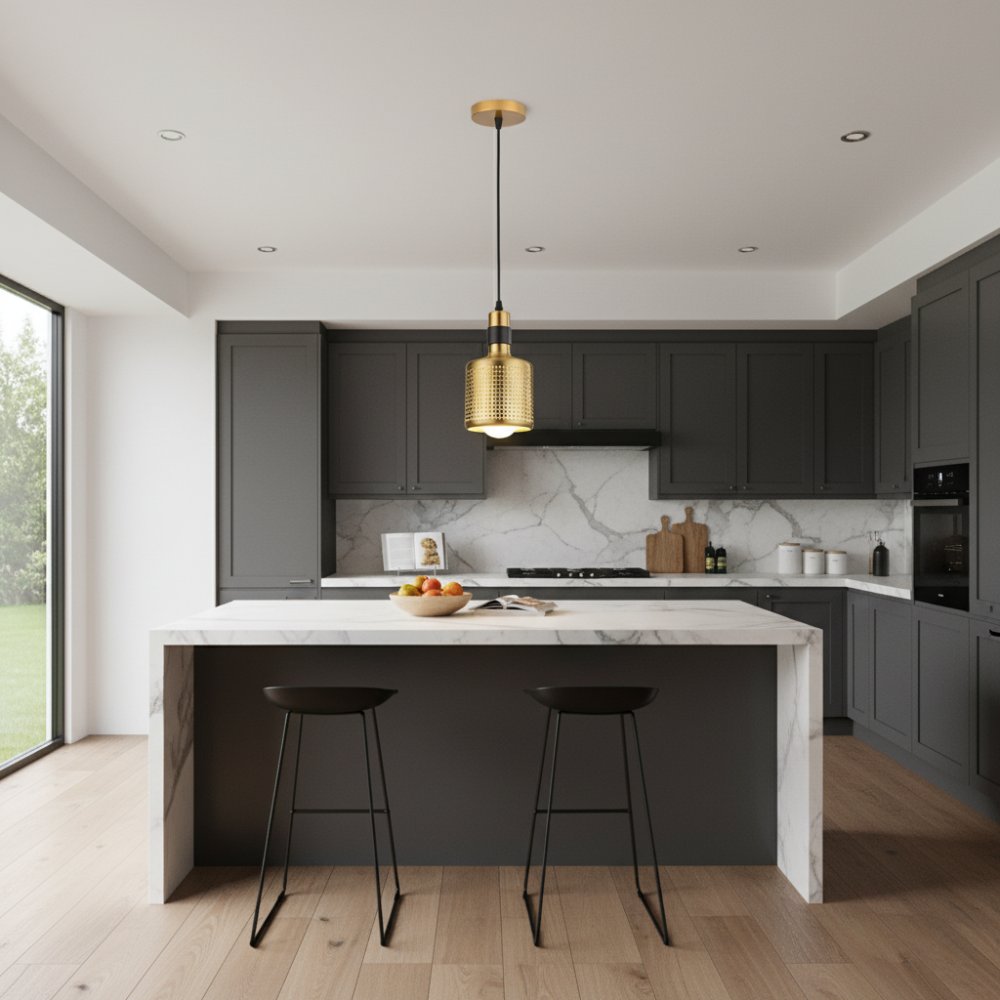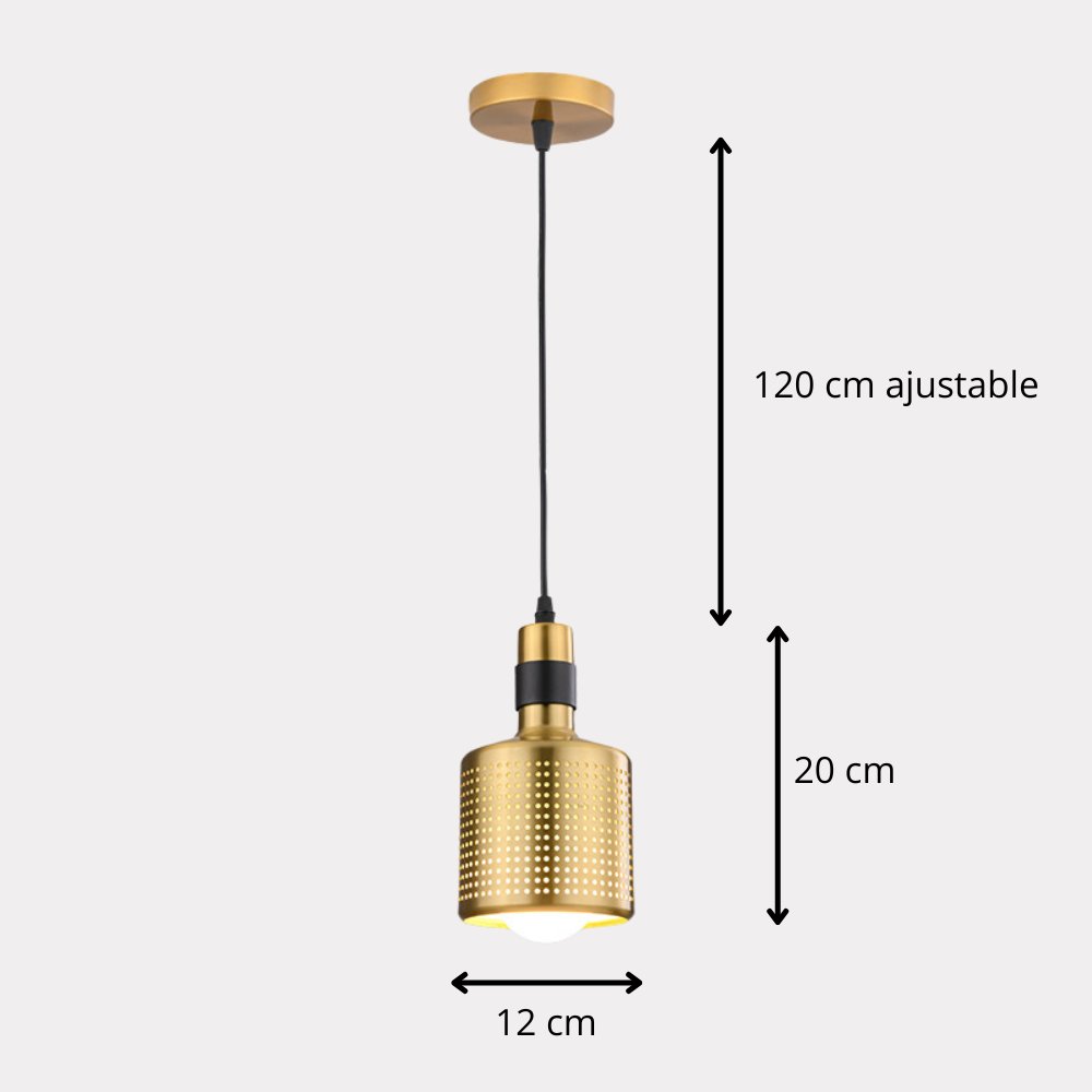 Compacte et lumineuse, la Suspension dorée perforée met en valeur vos pièces avec son abat-jour métal doré perforé. Sa lumière chaude crée une ambiance cosy au-dessus d’une table, d’un îlot ou dans l’entrée. Grâce à son câble ajustable 120 cm : vous réglez la hauteur en un geste. Sa douille E27 est compatible avec les ampoules LED, conseillées pour consommer moins, durer plus. Installation simple, notice claire. Seule ou en série, elle signe un style moderne art déco.