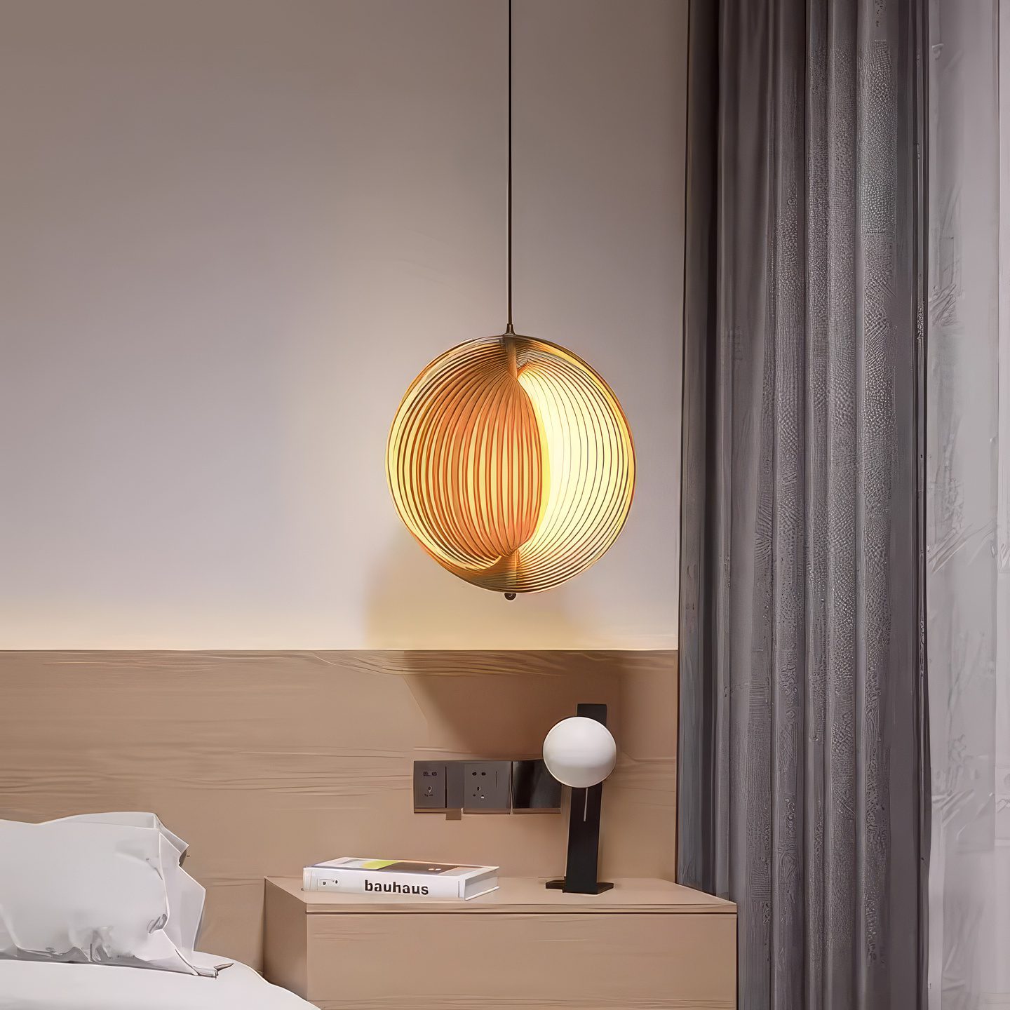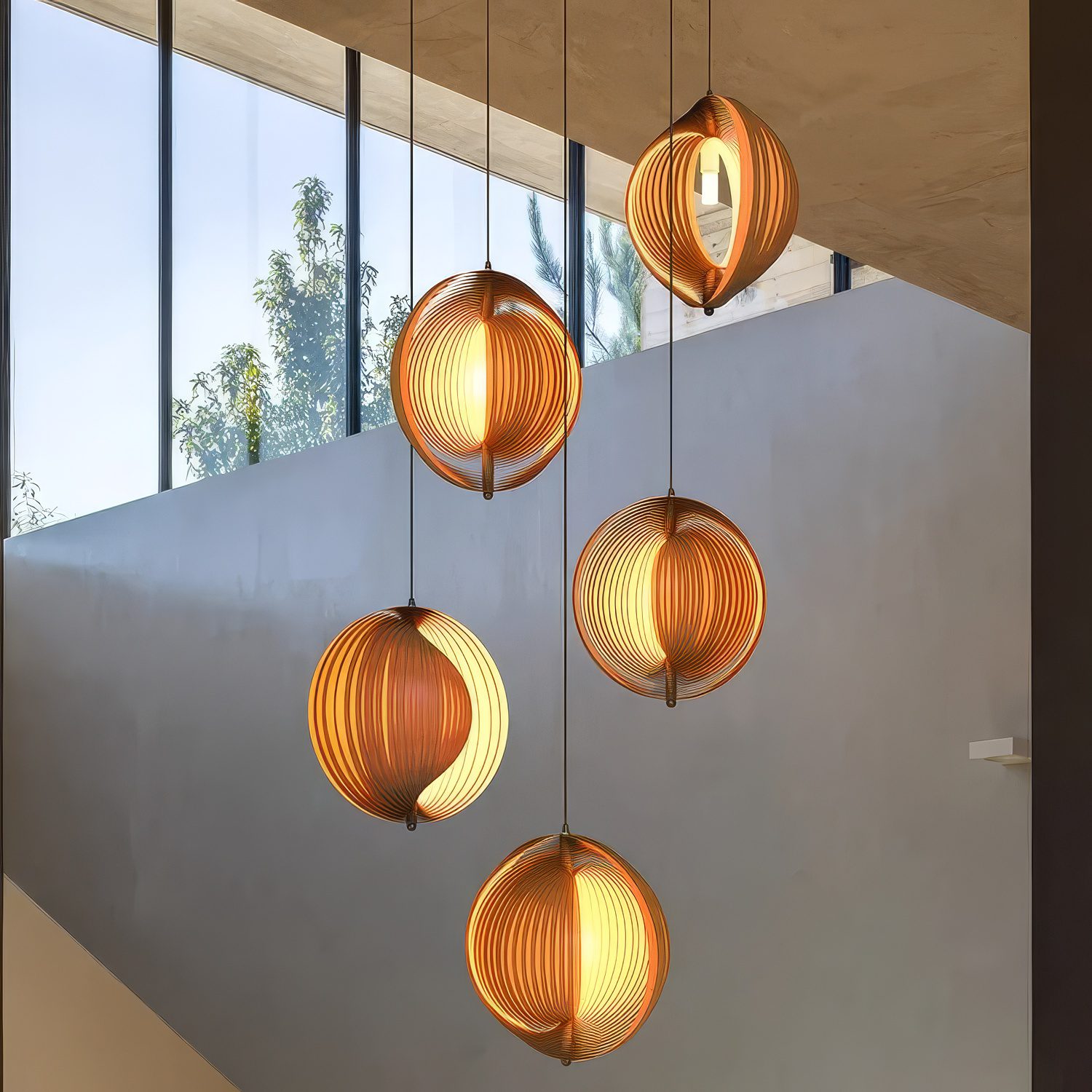 Cette suspension wabi sabi bois massif transcende l’ordinaire par sa géométrie parfaitement imparfaite. Ses lamelles de bois courbées avec précision créent une sphère organique où chaque rainure capture et diffuse la lumière dans un ballet d’ombres mouvantes. Le bois massif révèle ses veines naturelles et ses nuances chaleureuses, transformant cette pièce en véritable sculpture lumineuse suspendue. Sa forme minimaliste mais expressive s’intègre aussi bien dans un bureau moderne qu’autour d’une table de salle à manger, apportant cette touche zen qui apaise instantanément l’atmosphère. Avec sa hauteur modulable, cette suspension s’adapte à tous les intérieurs pour devenir ce point focal contemplatif qui rencontre le design contemporain, invitant à redécouvrir la beauté simple des matières authentiques.