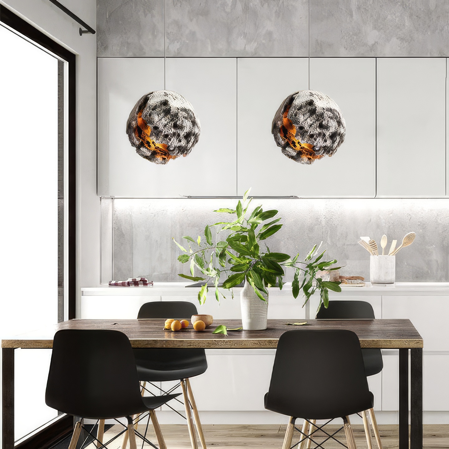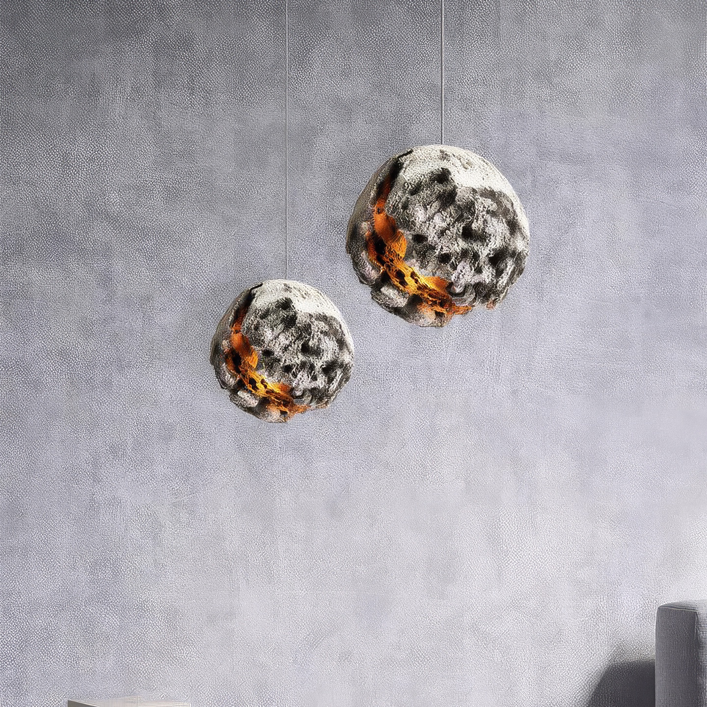 Suspension wabi sabi roche volcanique, un Ĺ“uvre d’art luminaire au coeur de votre intĂ©rieur