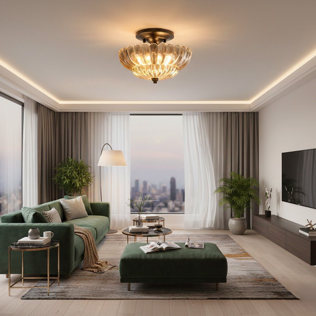 Plafonnier vintage salon en verre sculpté, l’élégance rétro pour une ambiance raffinée